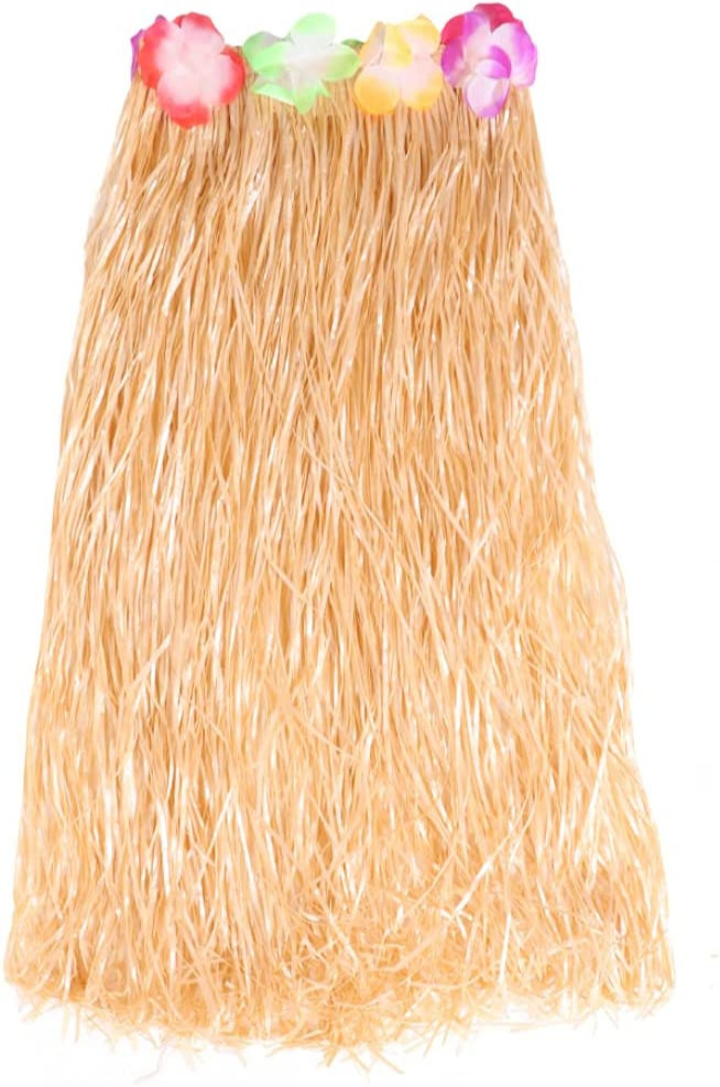 - LONG NATURAL 80CM HAWAIIAN HULA SKIRT WITH FLOWERS AROUND THE WAISTBAND