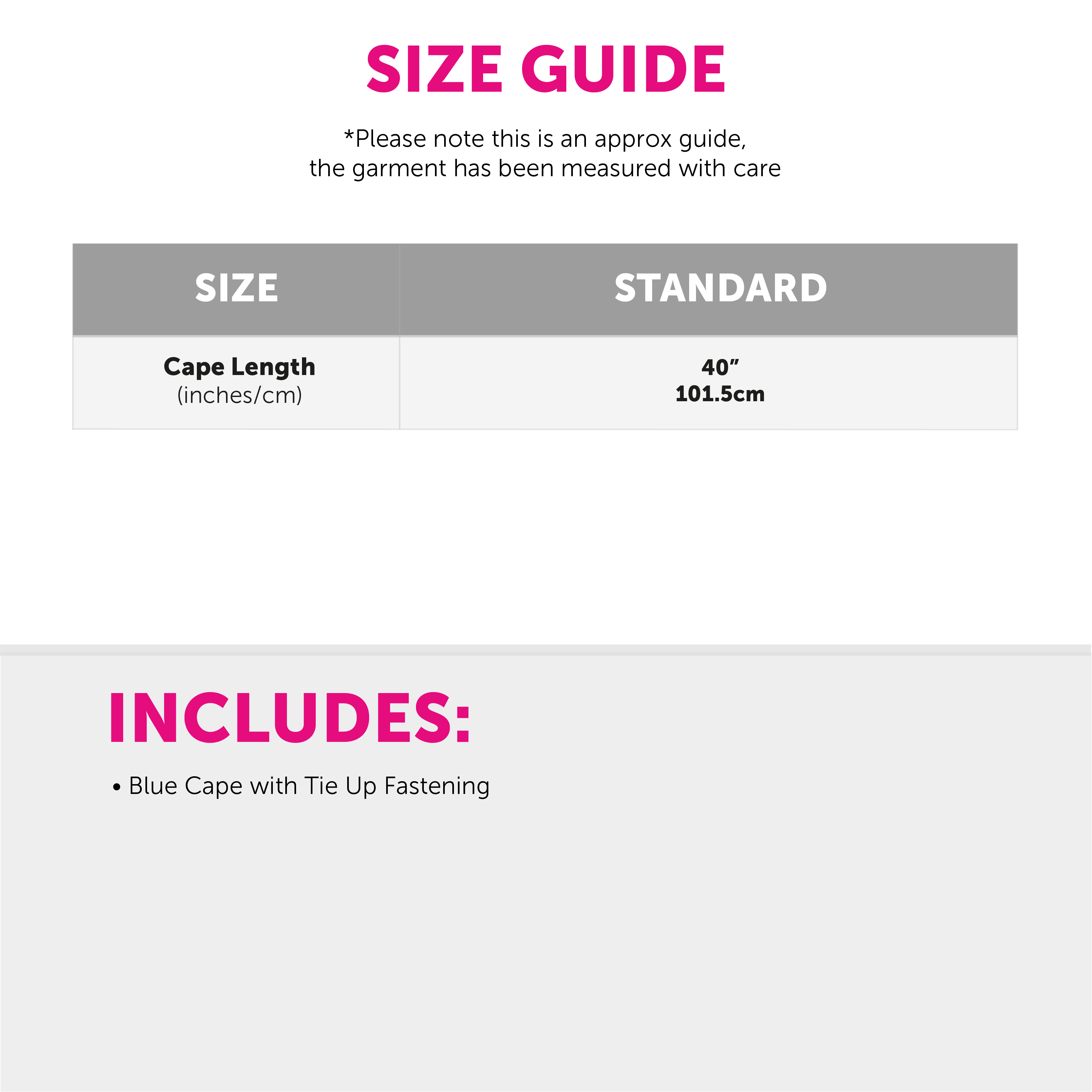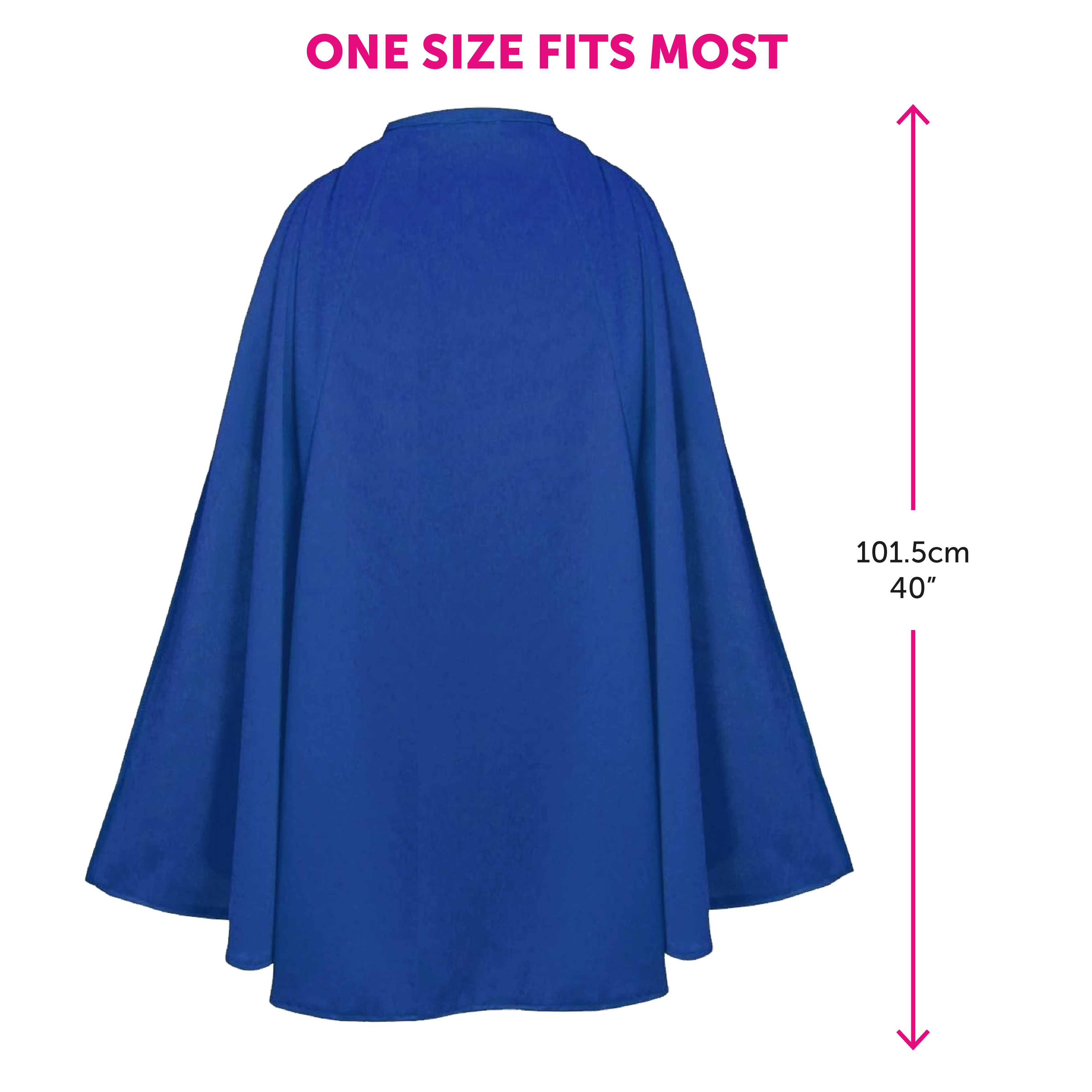 ONE SIZE FITS MOST: Your Adults Blue Cape is only available in one size, measuring 40" (101.5cm) in length, you’ll feel comfortable and have no issue saving the day!