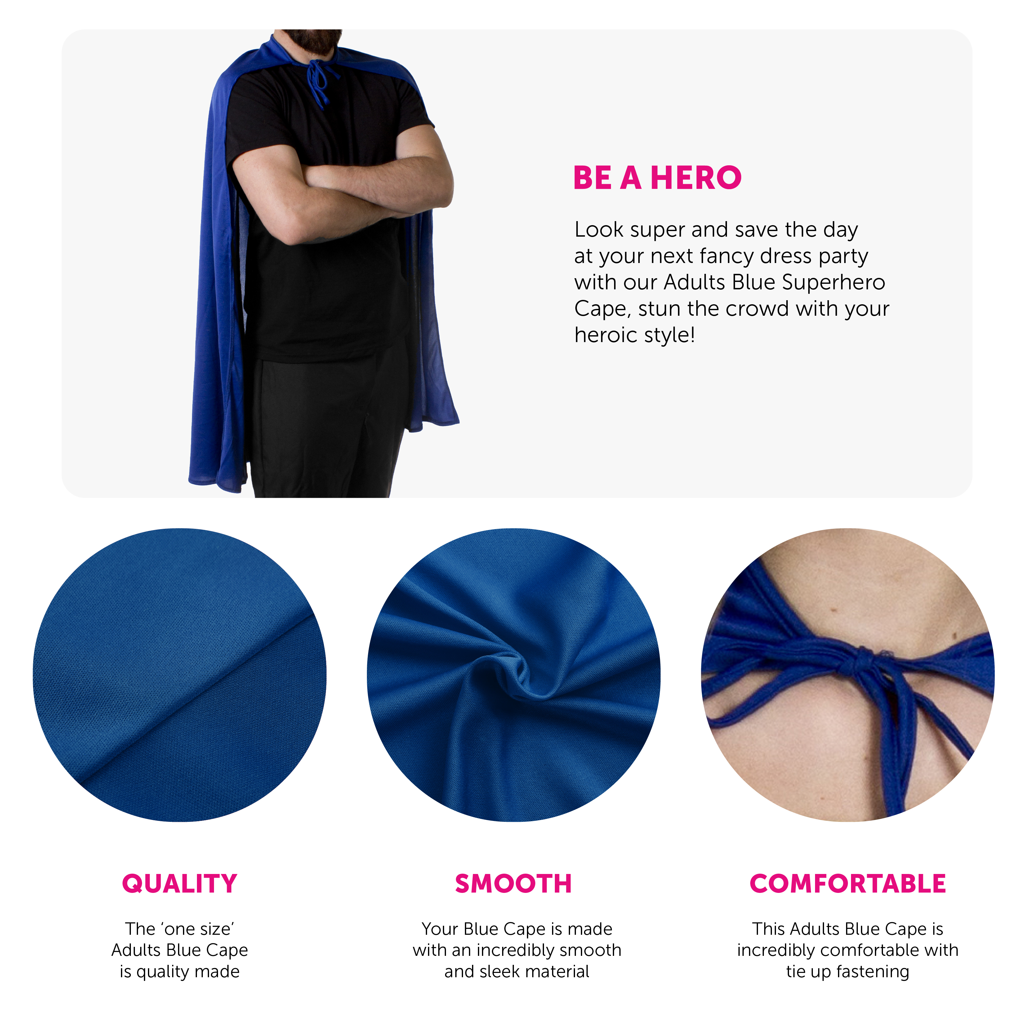 PERFECT FOR ANY FANCY DRESS: Whether you're a Superhero, a Super Villain or attending any kind of fancy dress event, you can't go wrong with this Adults Blue Cape!