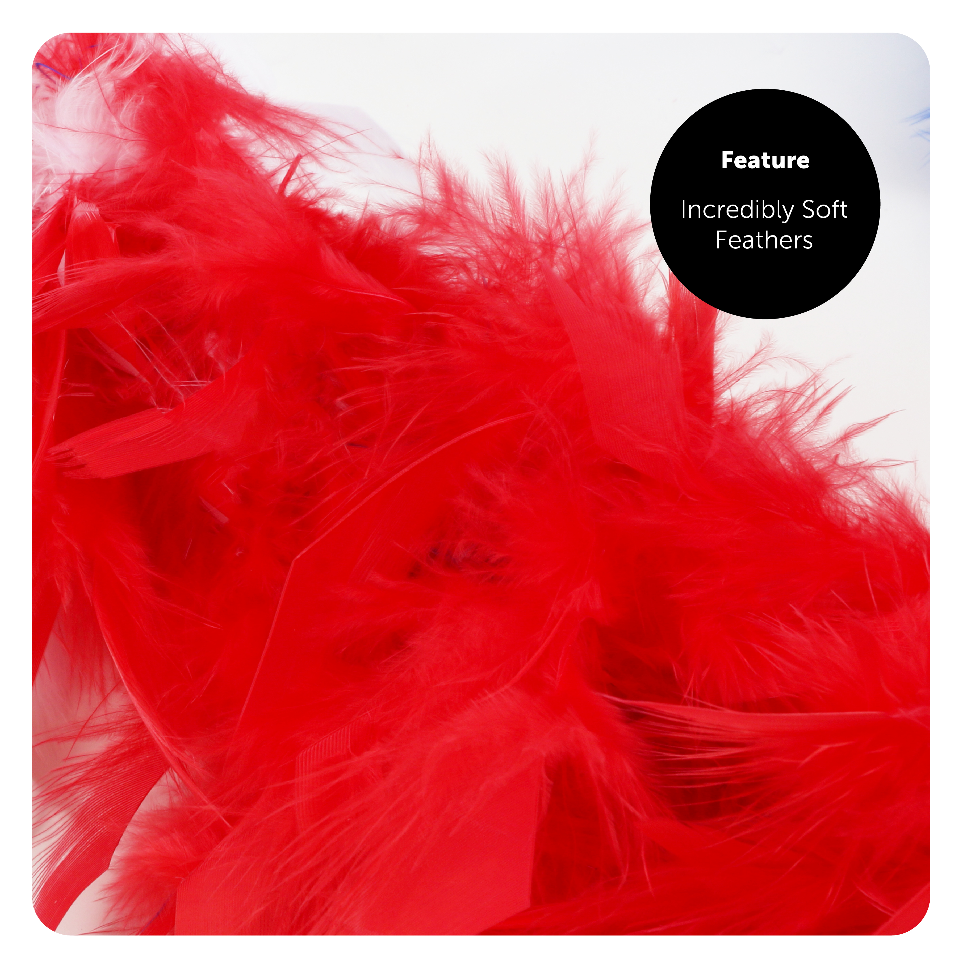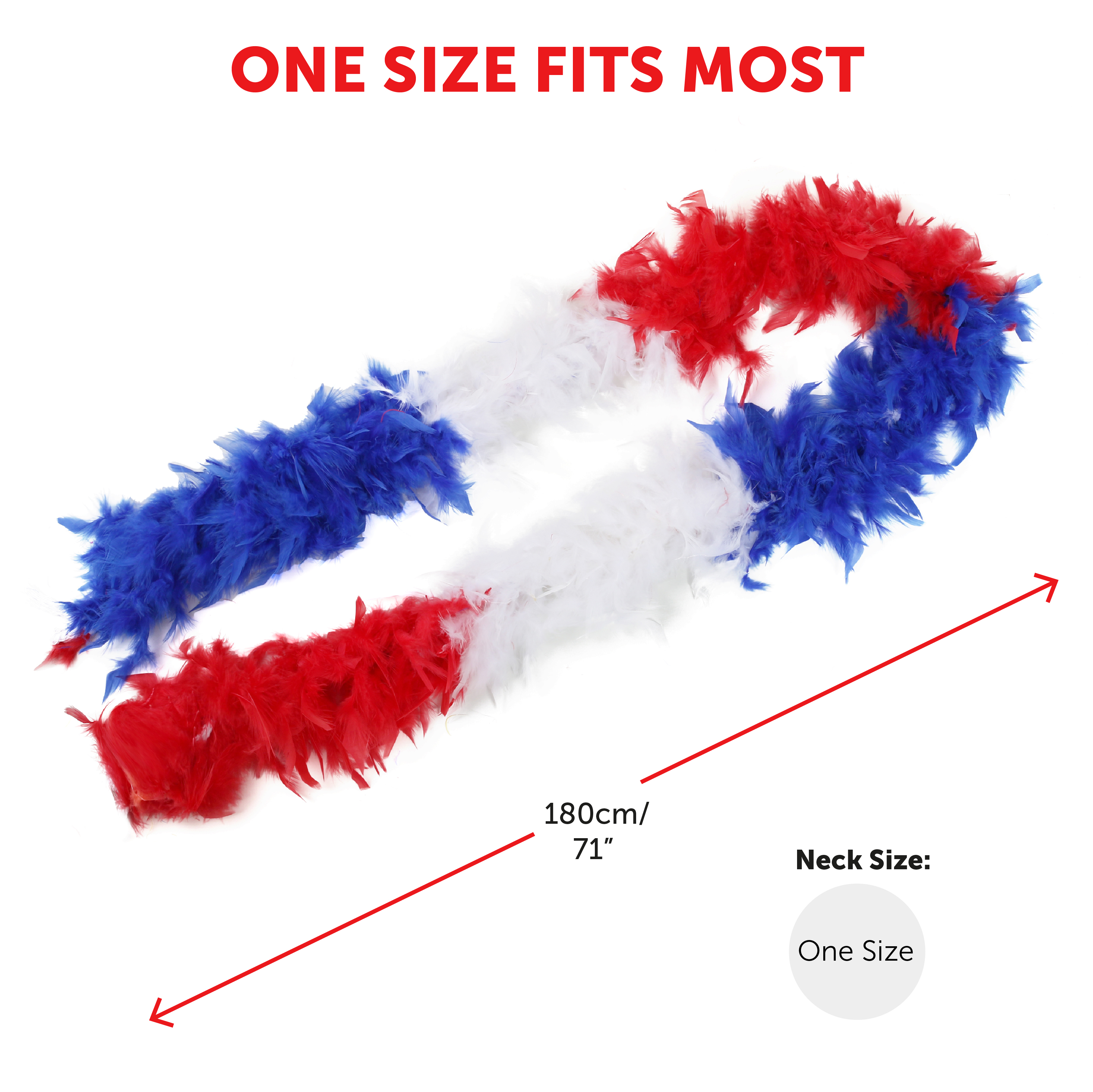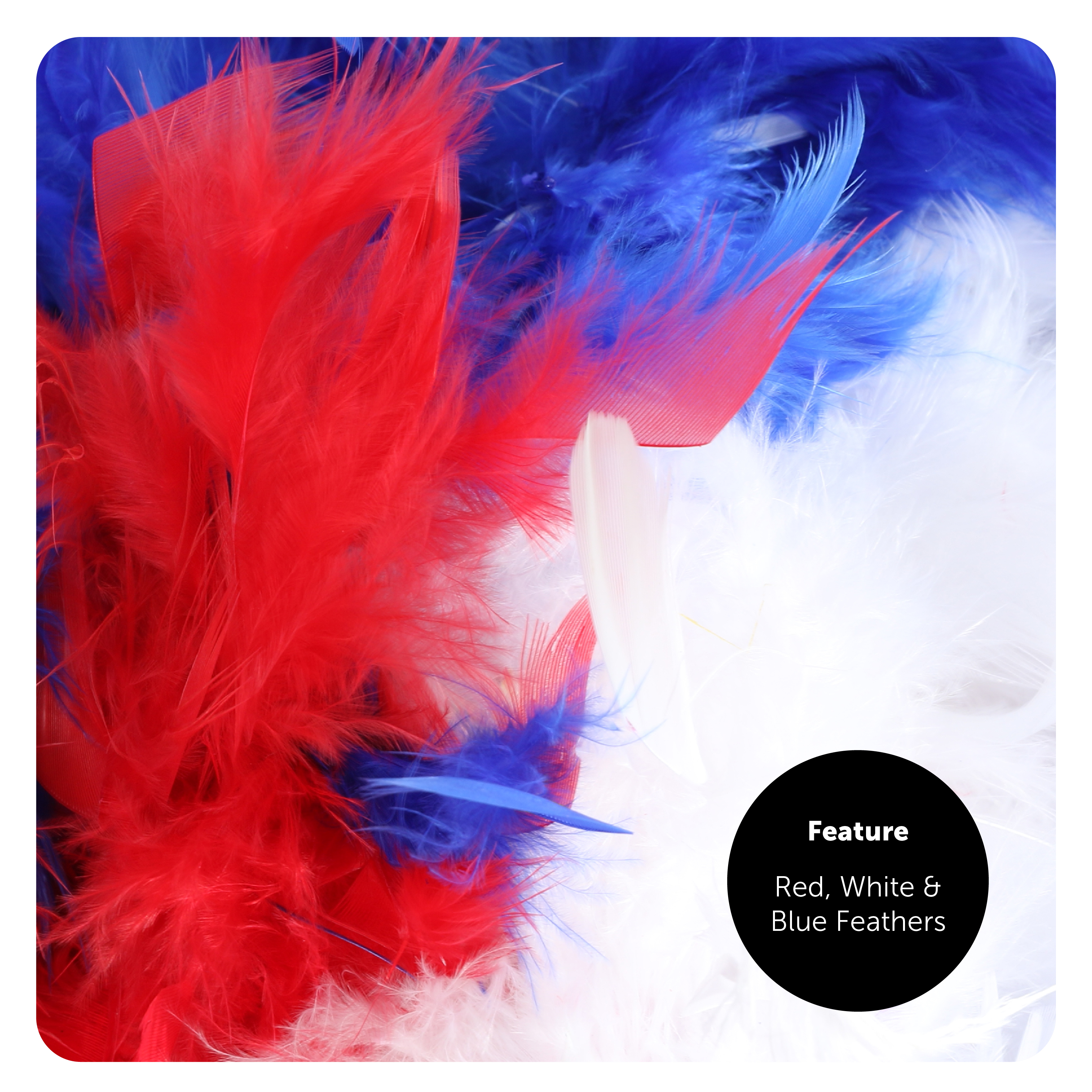 INCREDIBLY SOFT FEATHERS: Your Red, White and Blue Feather Boa is made with incredibly soft feathers sewn onto string - although the product is reusable, there may be some initial shedding, please shake the Feather Boa to rid of any loose feathers before wearing!
