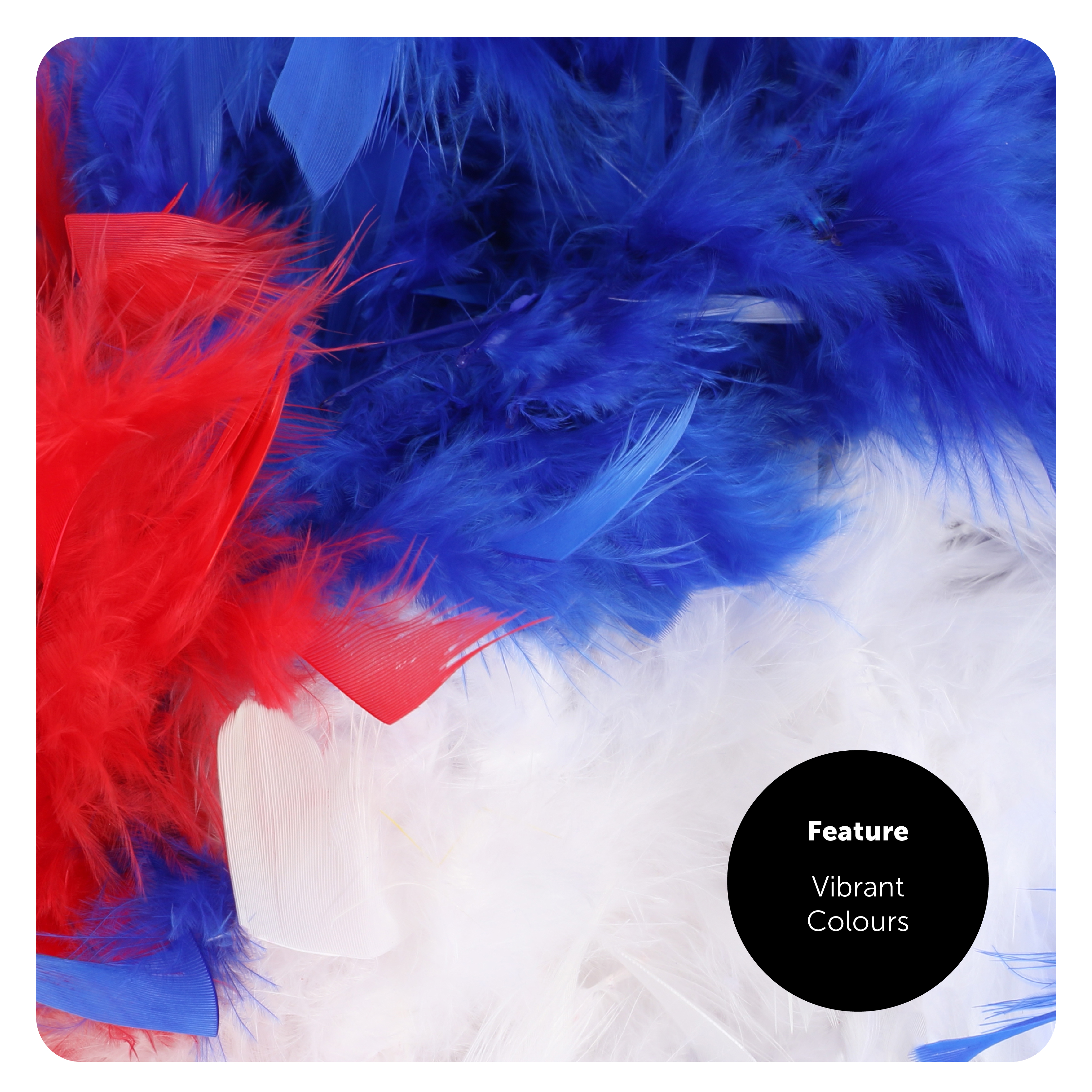 PERFECT FOR ANY FANCY DRESS EVENT: Whether it be to support your country by sporting their colours, for a Hen Party or Flapper fancy dress, this Red, White and Blue Feather Boa is the perfect addition to any outfit!