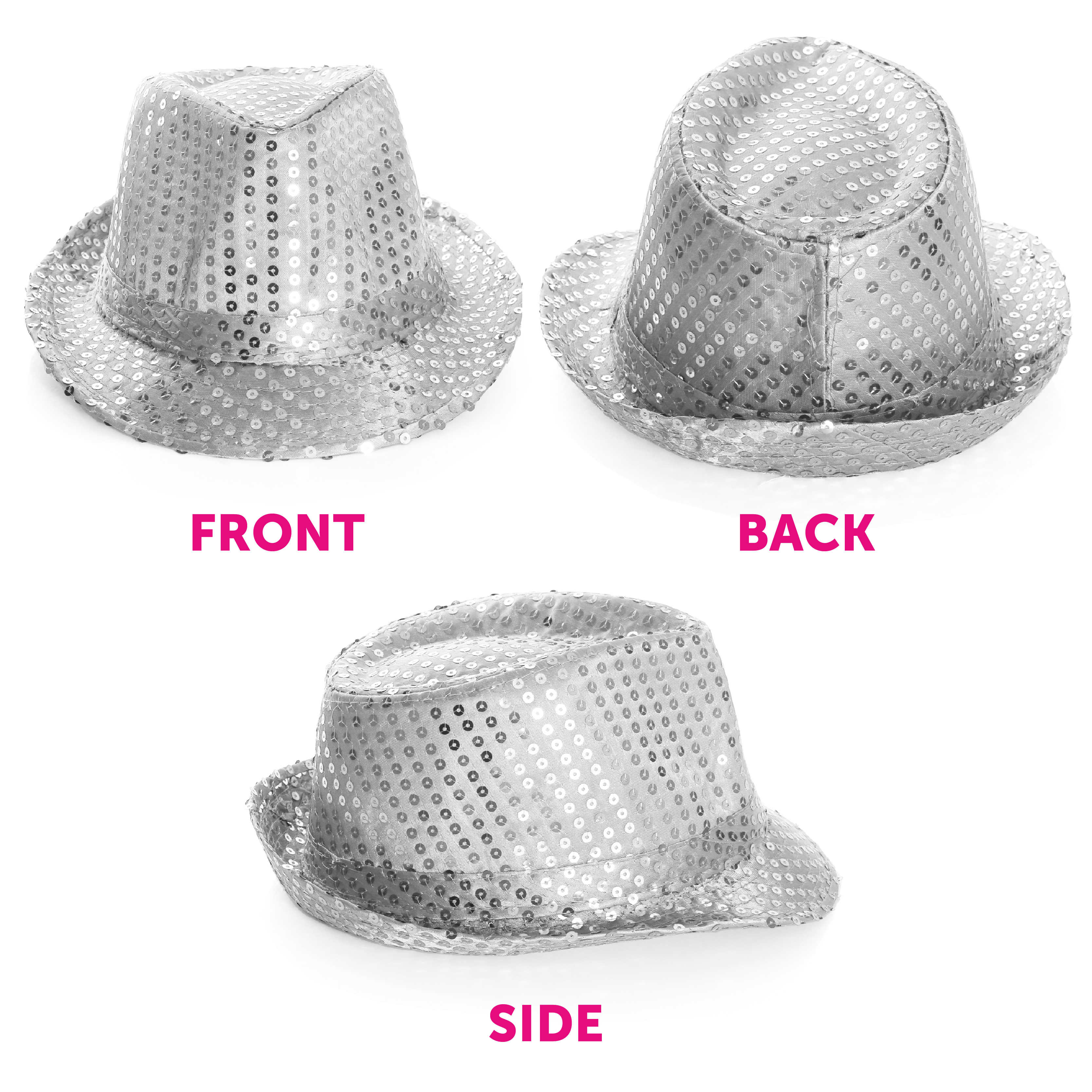 AVAILABLE IN MULTIPLE PACKS: The Silver Sequin Trilby Hat is available in multiple pack sizes from Single Packs to Packs of 3, Packs of 6, Packs of 12, Packs of 24 and Packs of 48, for you to share with friends and family!