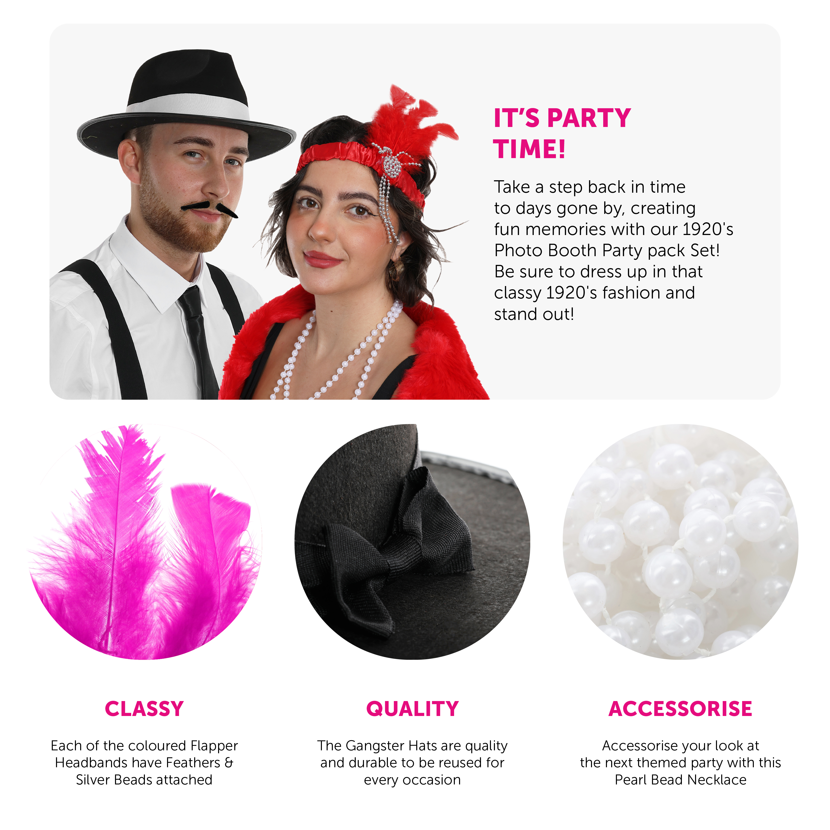 1920'S PHOTO BOOTH PARTY PACK: Take a step back in time to days gone by, creating fun memories with our 1920's Photo Booth Party pack Set! Be sure to dress up in that classy 1920's fashion and stand out!