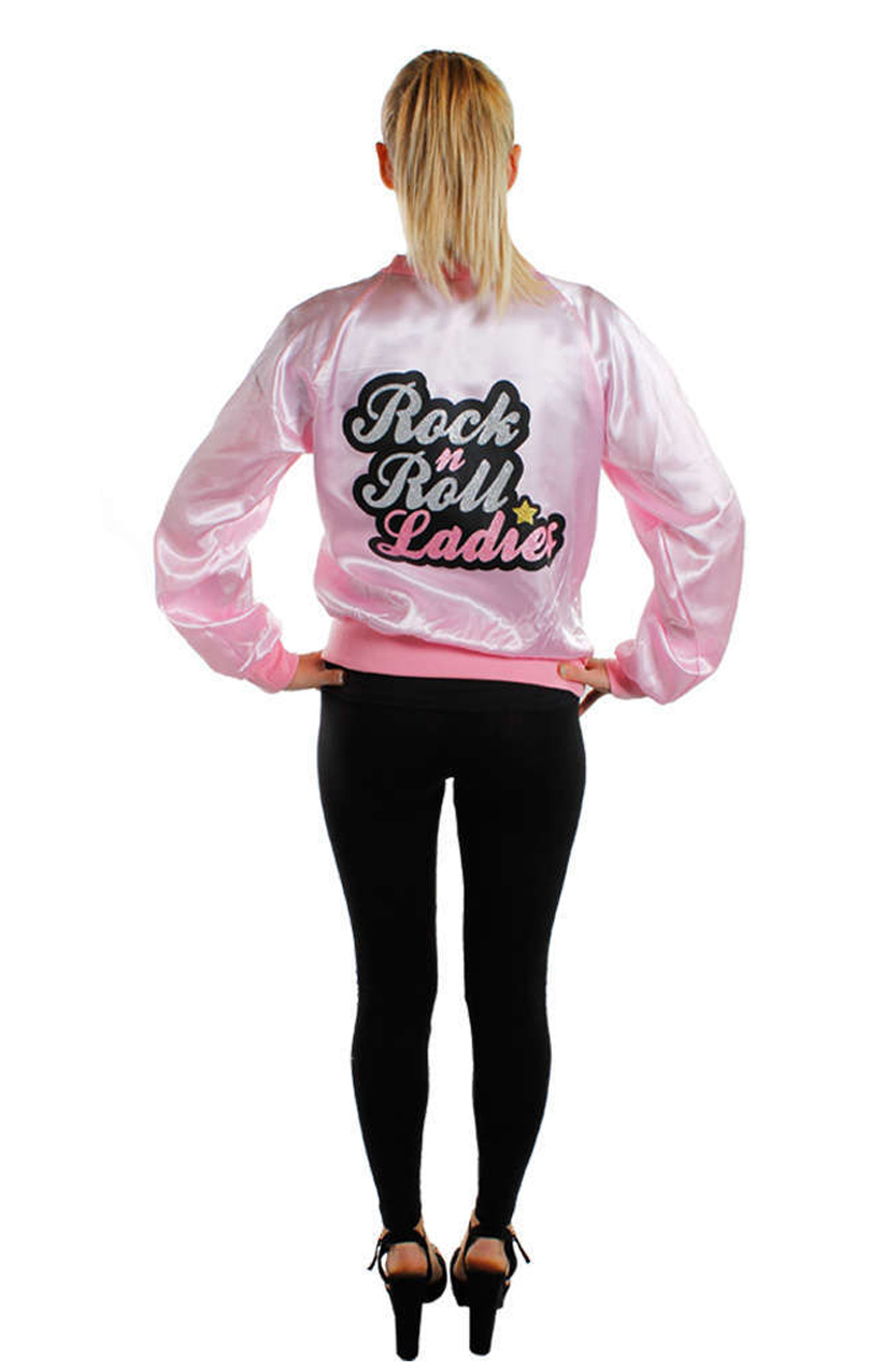 COSTUME INCLUDES: Your Pink Ladies Rock n Roll Jacket includes a Ladies Pink Bomber Style Jacket with “Rock n Roll Ladies” printed on the front and back of the jacket for a classic 1950s styled look and feel!