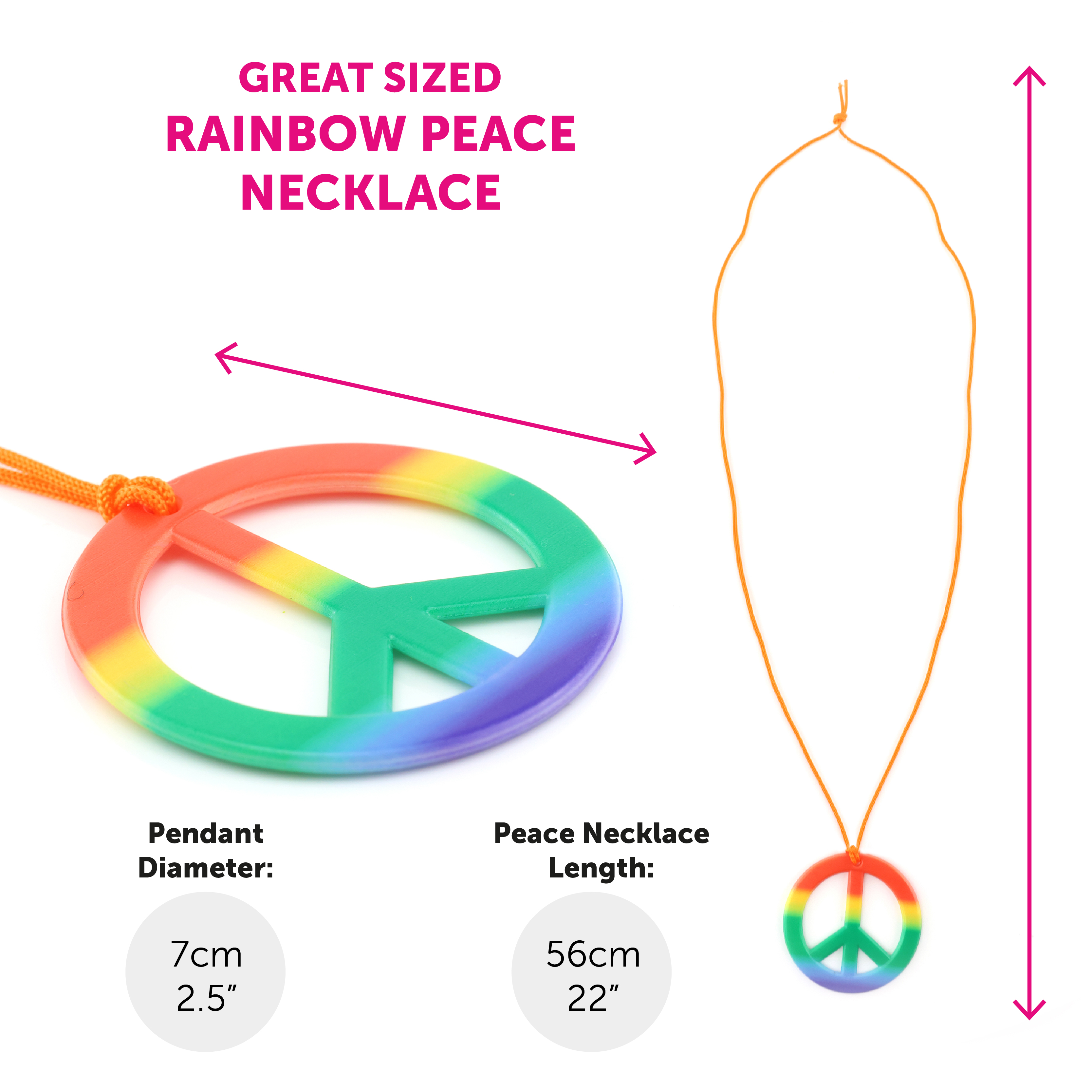GREAT QUALITY: Your Hippy Accessories are quality made, the Ginger Wig is made with great styled synthetic hair, the Flower Headband is a comfortable accessory and the plastic Rainbow Necklace is a quality jewellery piece!