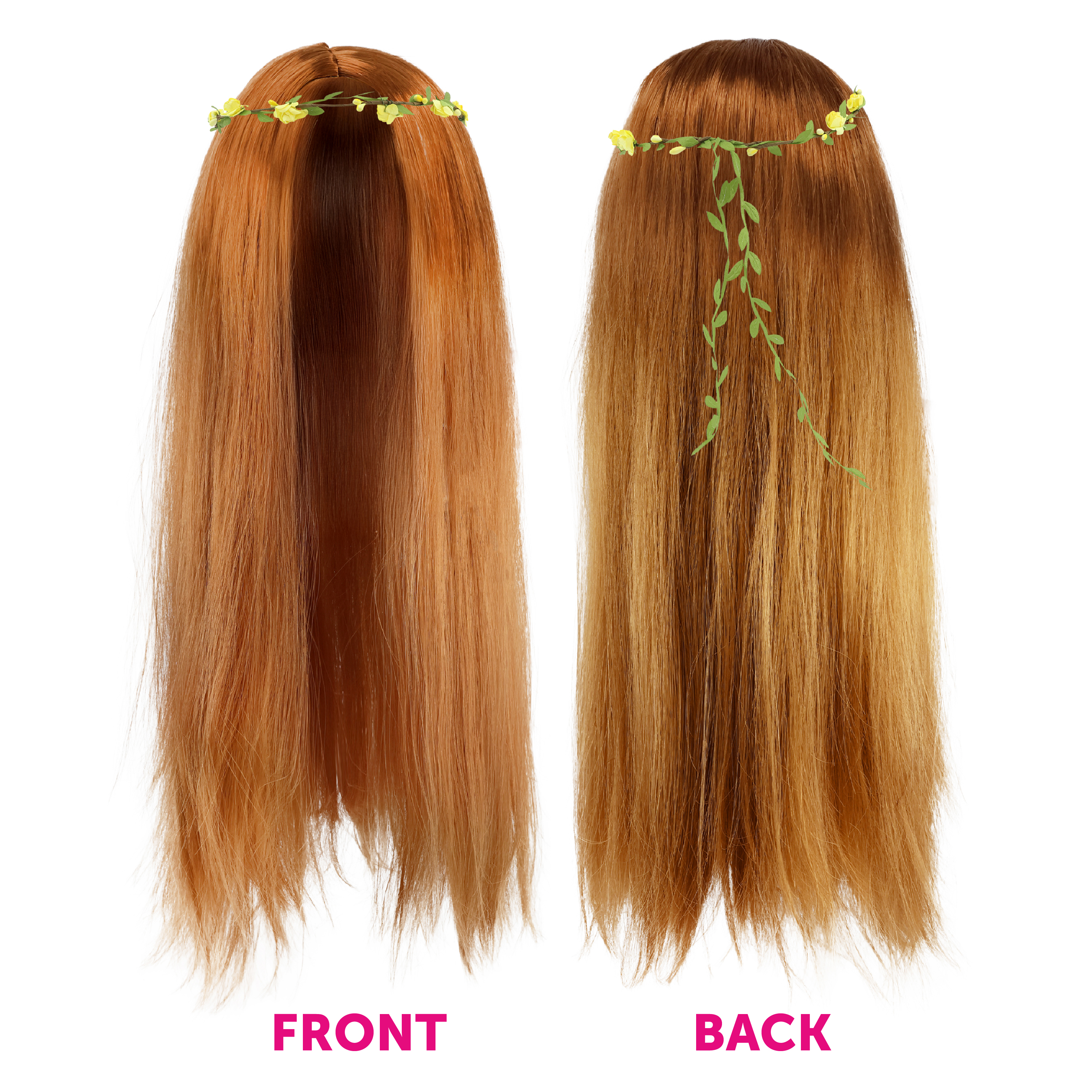 ACCESSORY SET INCLUDES: This Hippy Accessory Set includes a sleek Long Ginger Wig, an adjustable Necklace with a plastic Rainbow Peace Symbol pendant, and a Headband with delicate green leaf vines and Yellow Flower detail, the perfect accessories to add to your Hippy Outfit!