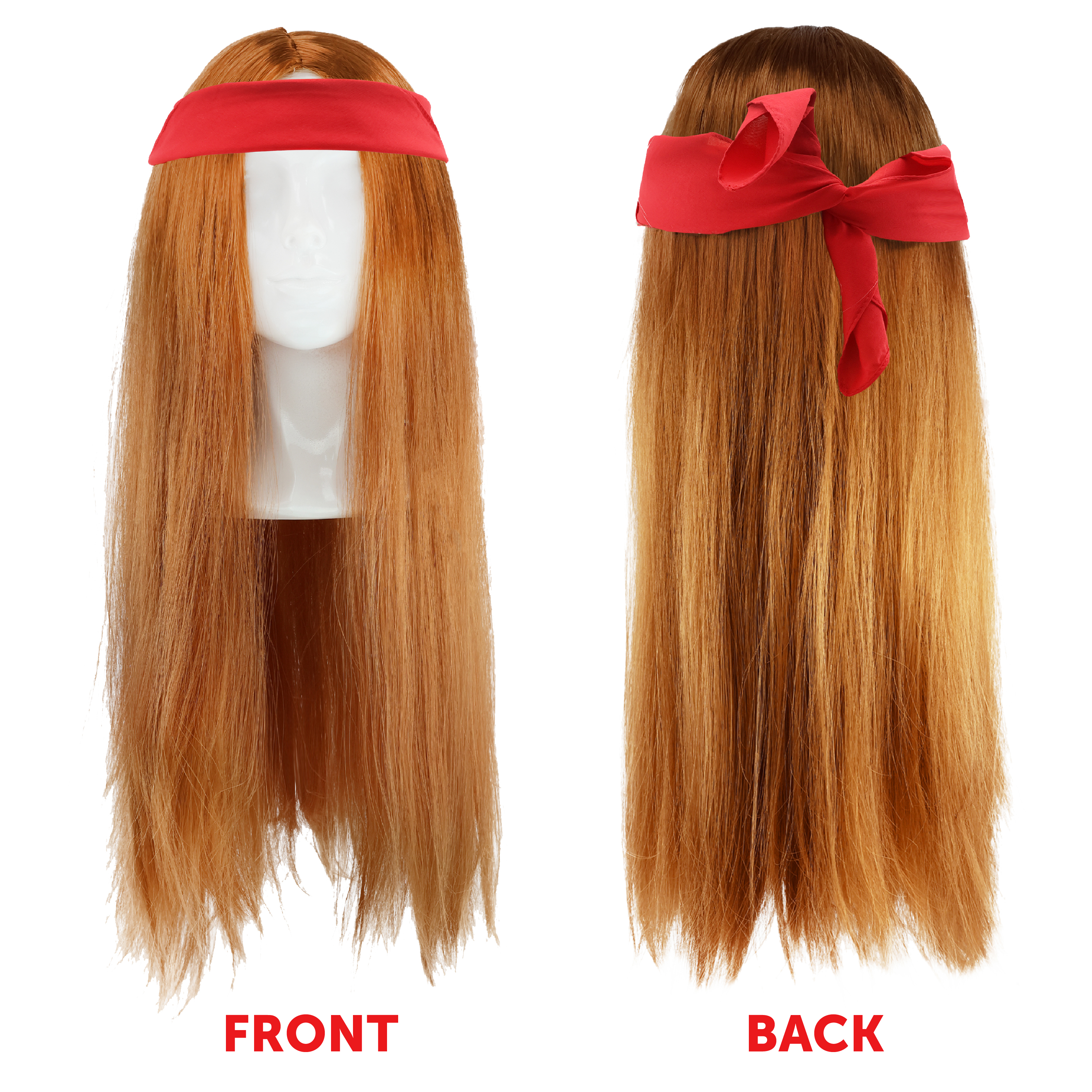 ACCESSORY SET INCLUDES: This Accessory Set includes a Long Ginger Wig, Gold Frame Sunglasses, a Plain Red Bandana, and a pair of Black Faux-Leather Fingerless Gloves with Silver Stud detailing, the perfect addition to your iconic look!