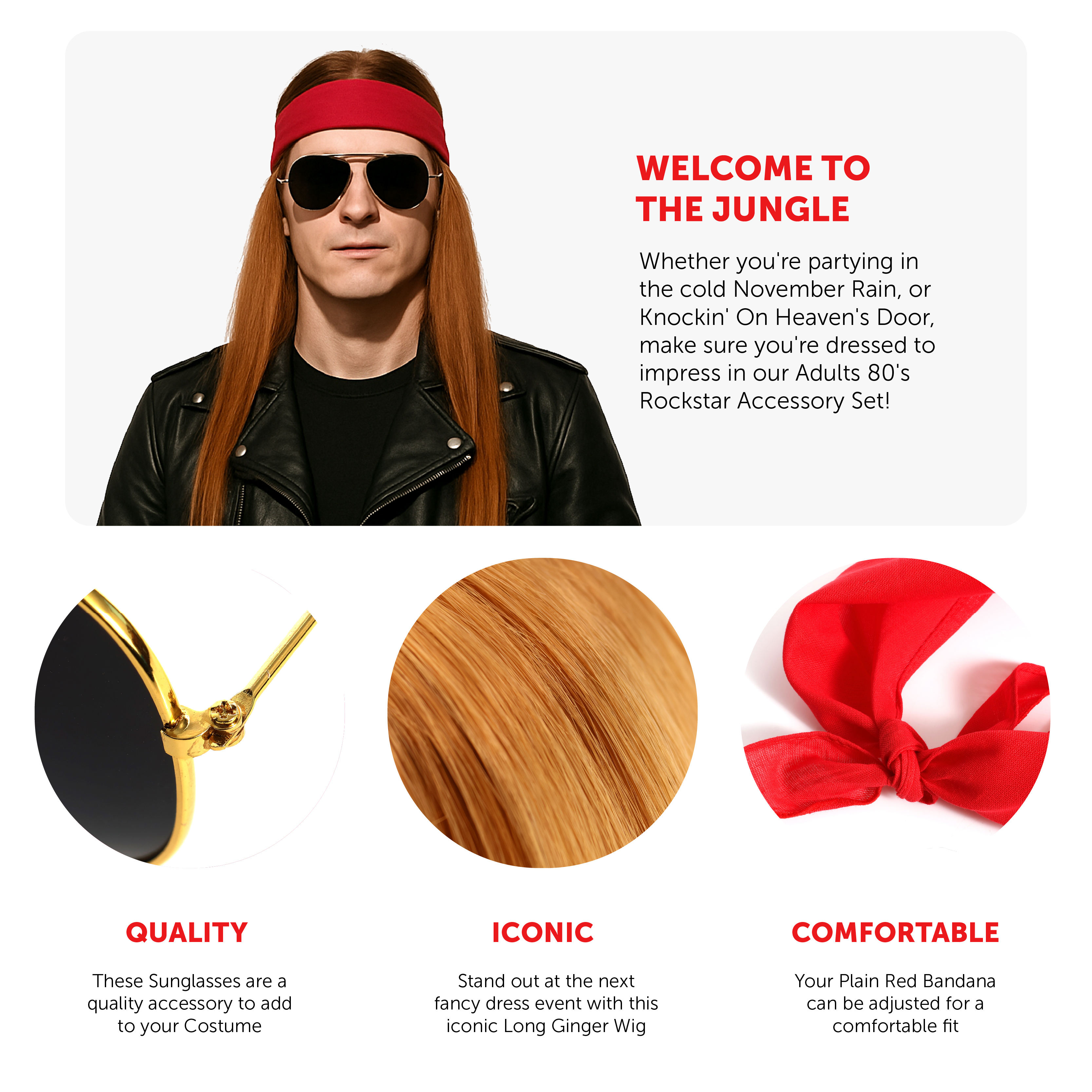 Axl Rose Inspired Accessory Set | 4 Pcs | Ginger Wig, Red Bandana, Gloves & Glasses £13.99