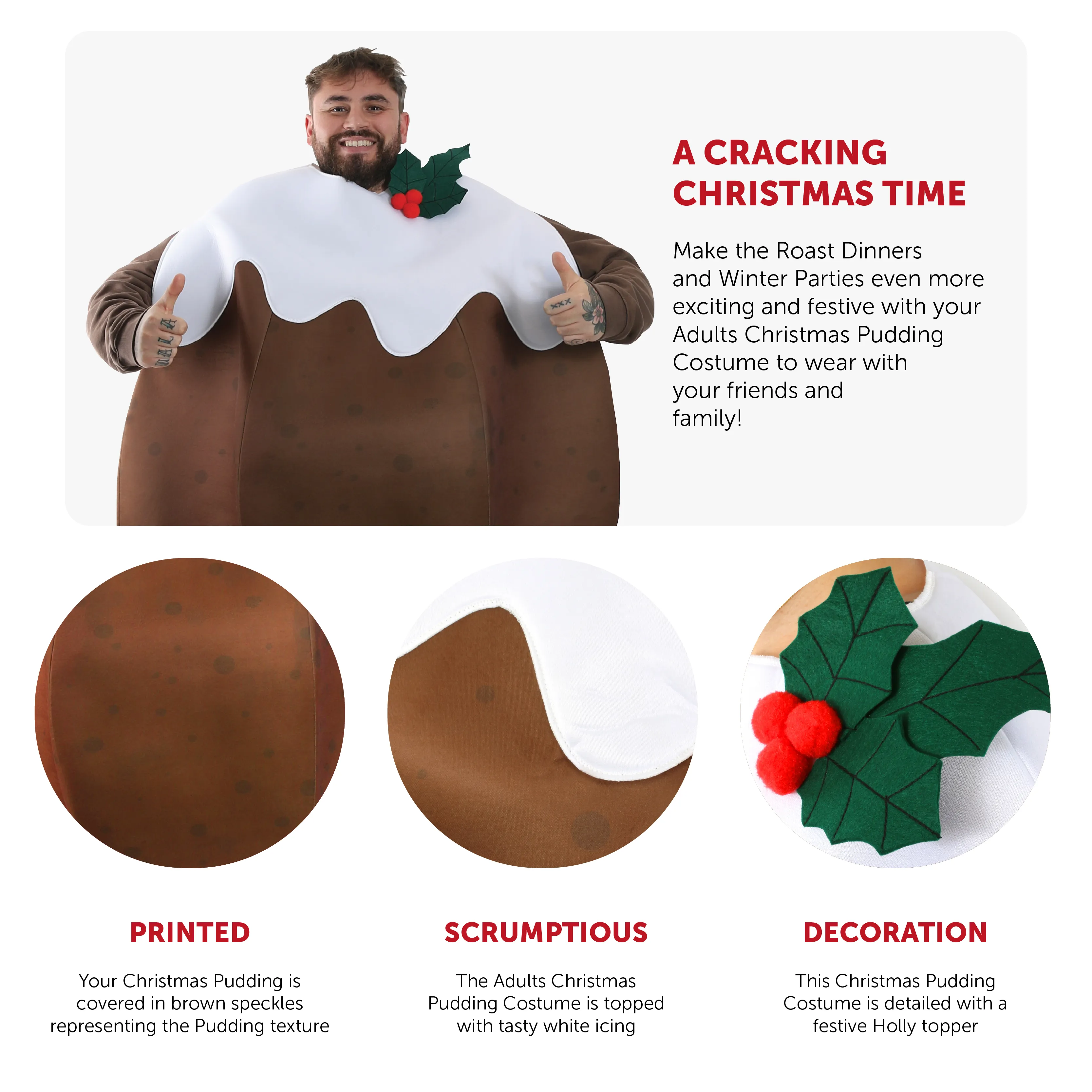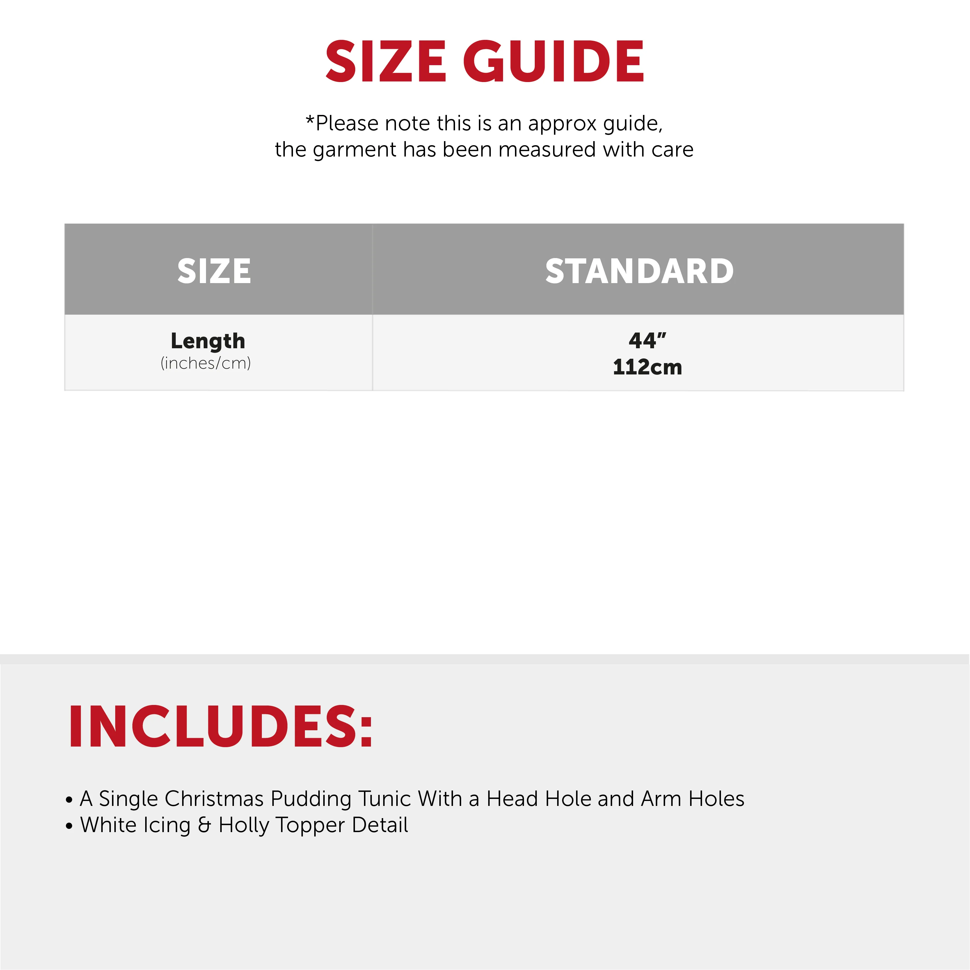 Your Adults Dartboard Christmas Pudding Costume is designed as a one-size-fits-most outfit, measuring approximately 44” (112cm) in length, making it suitable for most adults to wear comfortably.
