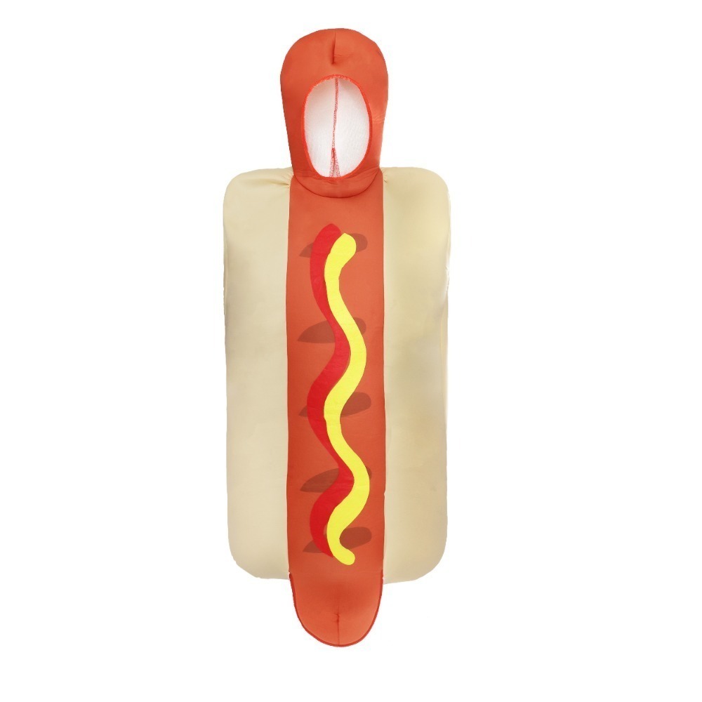 This Adults Hotdog Costume is an all-in-one foam tunic designed to look like a hotdog in a bun, complete with bold mustard detailing down the front. Featuring comfortable head and arm holes, it allows full movement and all-night comfort while being worn over regular clothing.