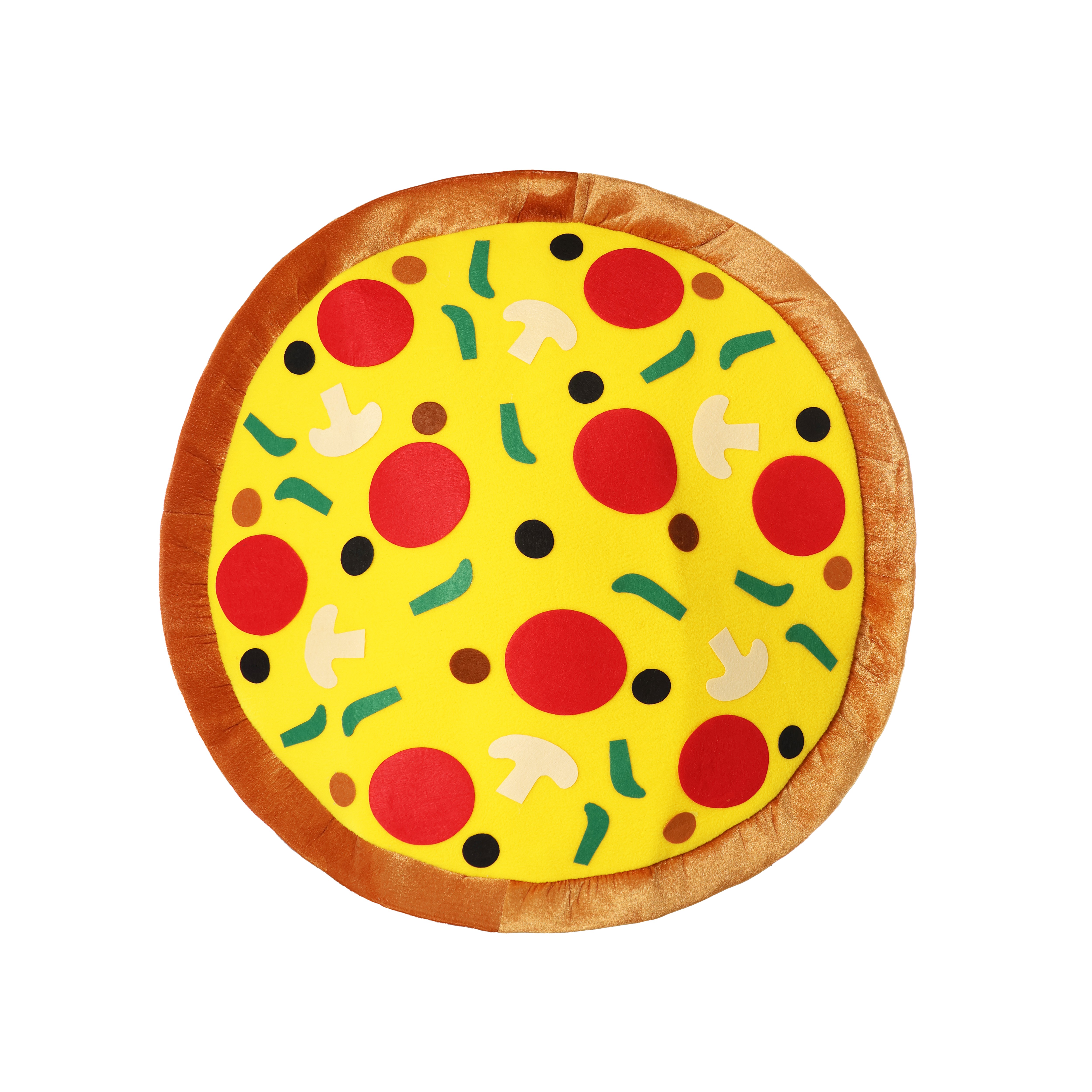 - All-in-one foam tunic designed to look like a round pizza with realistic toppings.