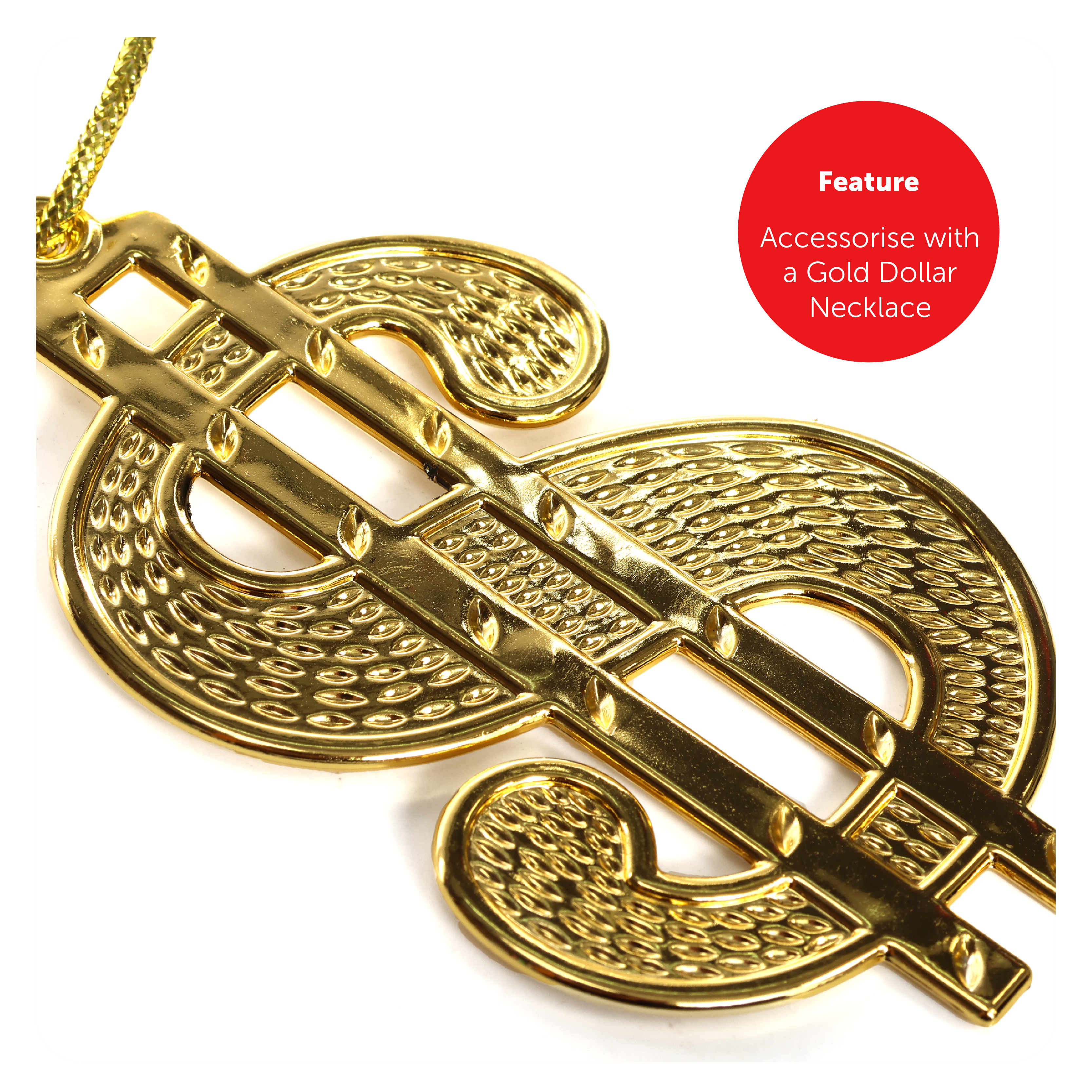 SET DETAILS: Your Funny 90's Rapper Set includes a Red Satin Top Hat, a Red Rapper Hat, Yellow Lens Glasses, an Adhesive Black Goatee, a Gold Dollar Sign Necklace, and a 3 Piece Cane with a Silver Topper, the perfect set for any fancy dress event!