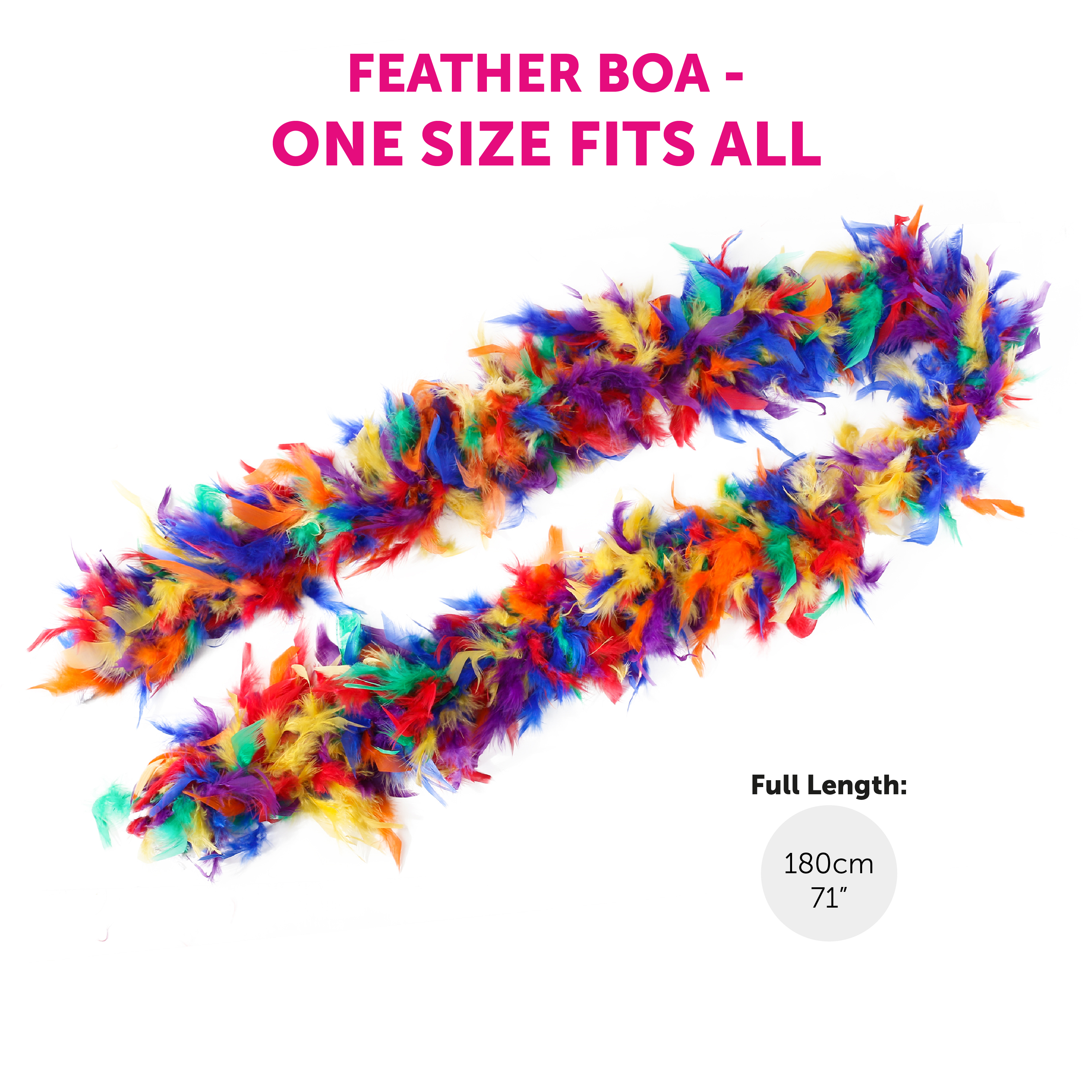 ONE SIZE FITS ALL: Both the Straw Boater Hat and the Feather Boa are one size, making them suitable for anyone to wear! The Boater Hat measures a head size up to 58cm (23"), and the Rainbow Feather Boa measures 180cm (71") in length!