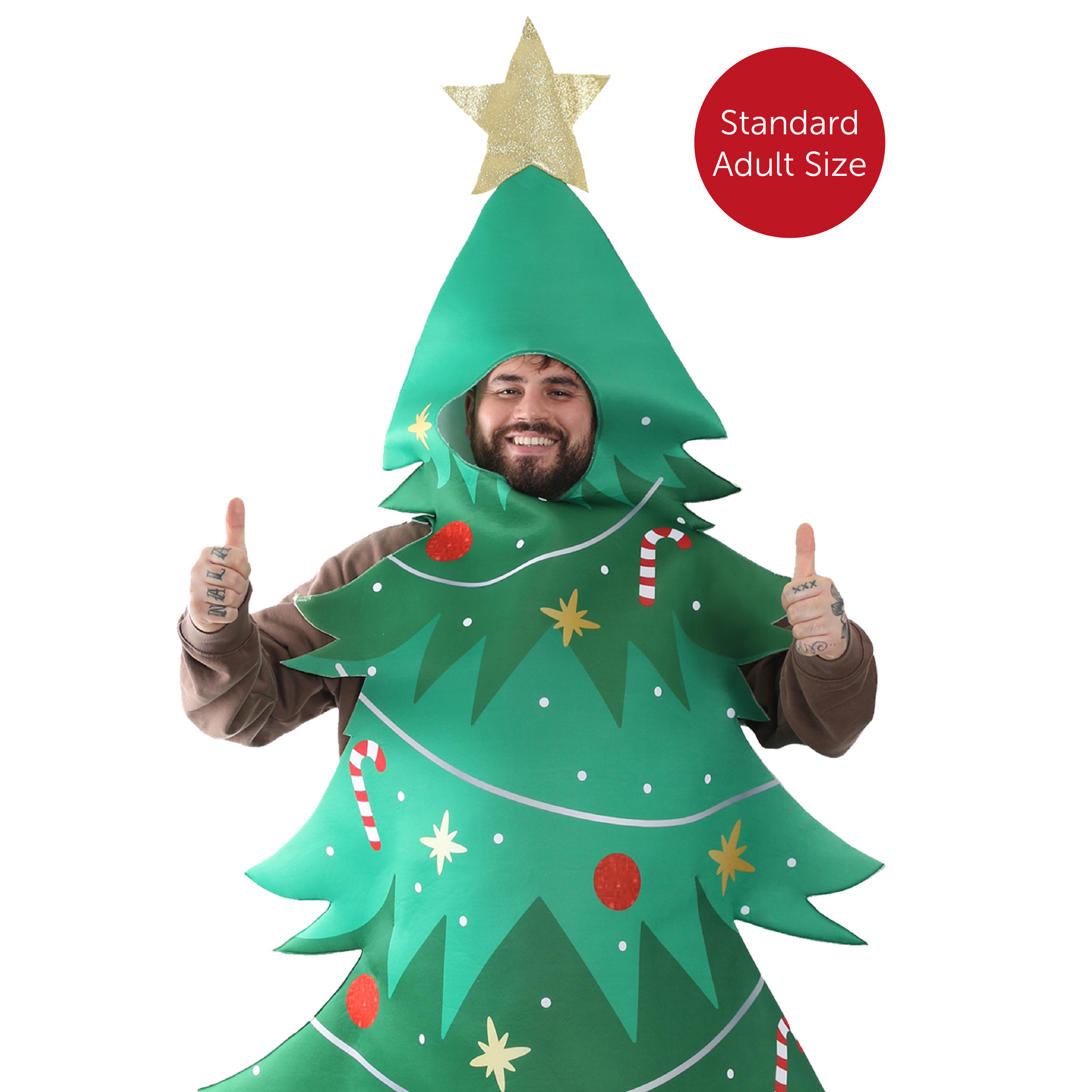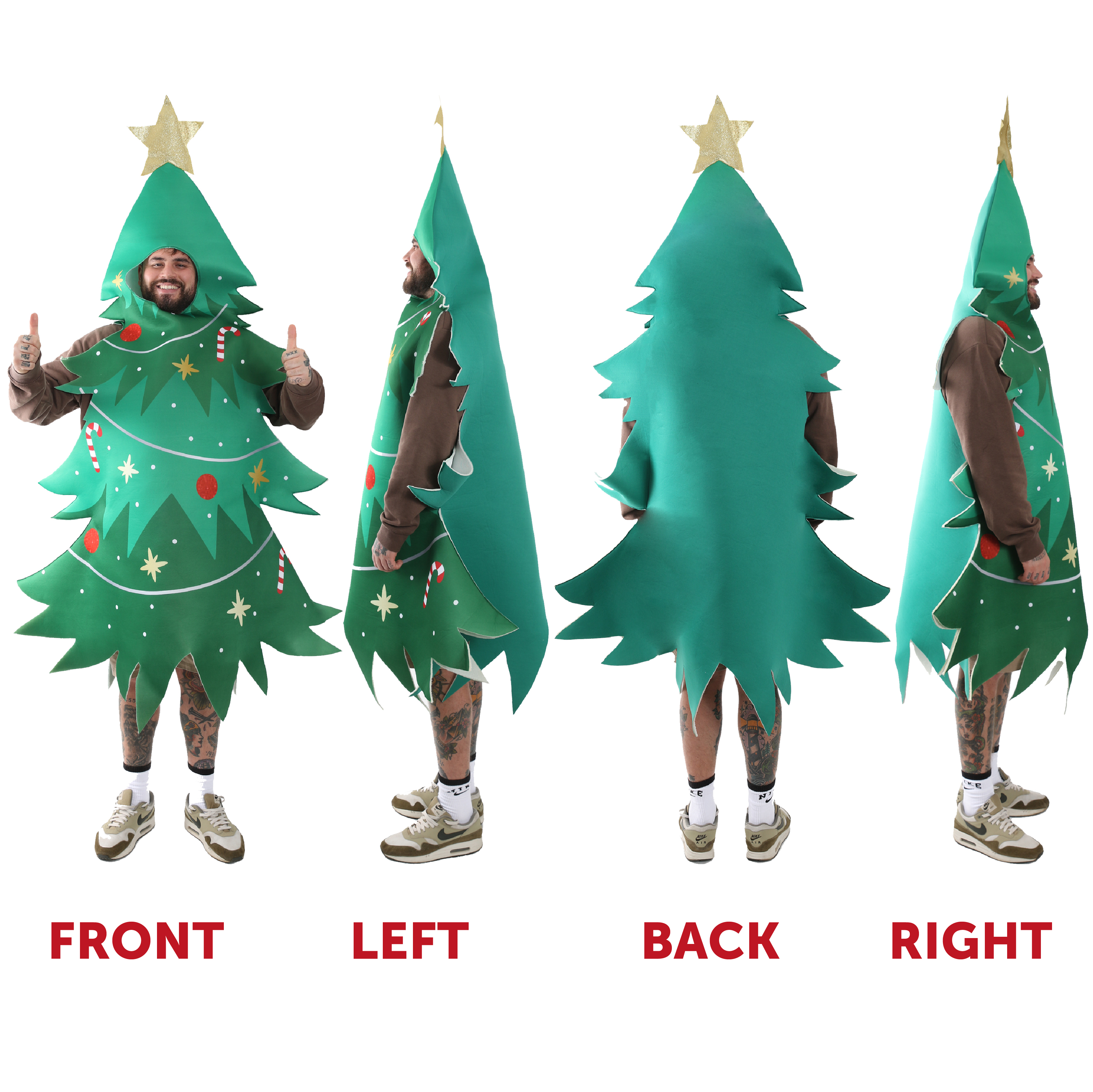 - CHRISTMAS TREE COSTUME DETAILS: Your Christmas Tree costume is a single Christmas Tree Tunic , with a comfortable spot for your face and your arms to allow for ease of use and comfort, with Christmas Decoration Details for the design!