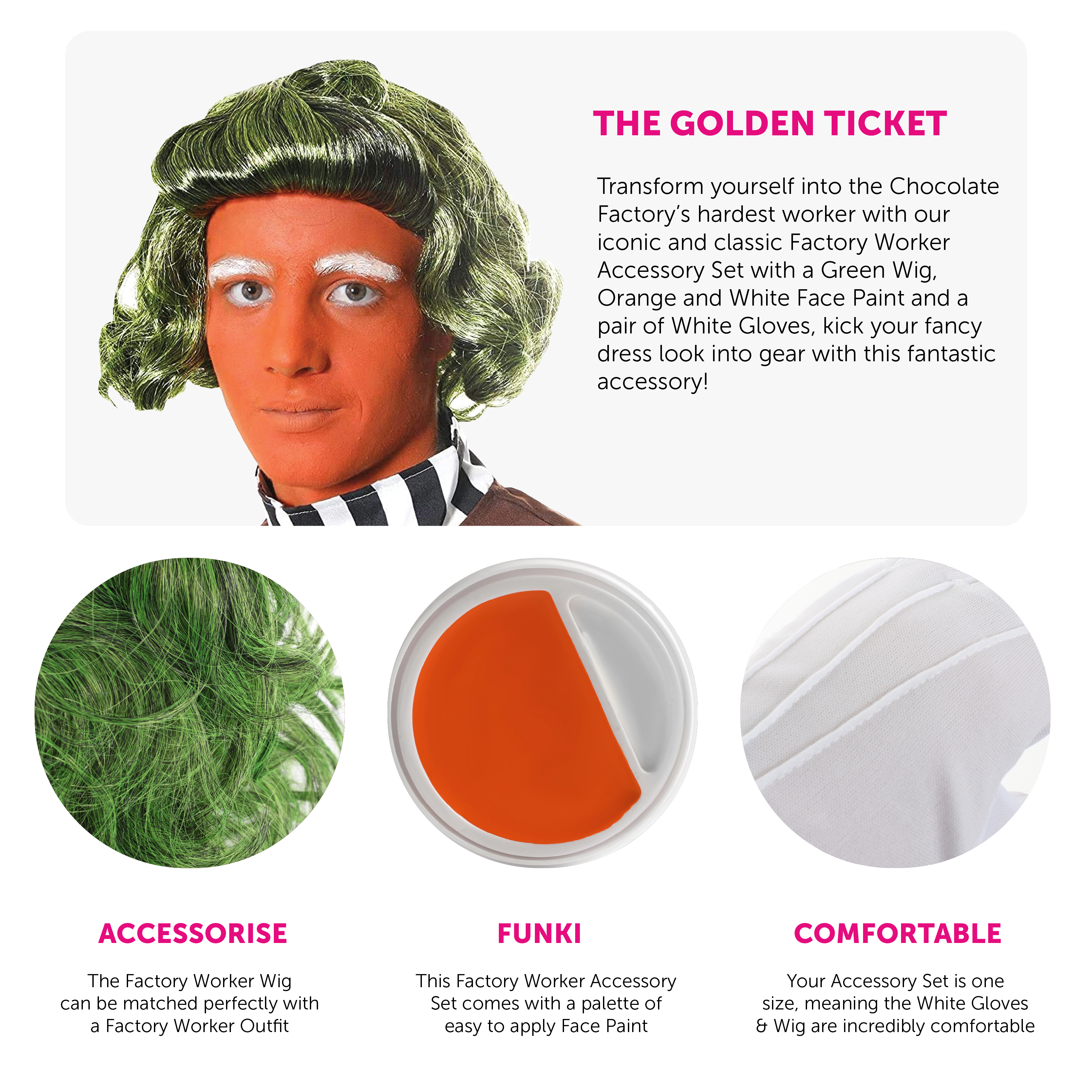 ADULTS GREEN FACTORY WORKER WIG: Transform yourself into the Chocolate Factory’s hardest worker with our iconic and classic Adults Green Factory Worker Wig and kick your fancy dress look into gear with this fantastic accessory!
