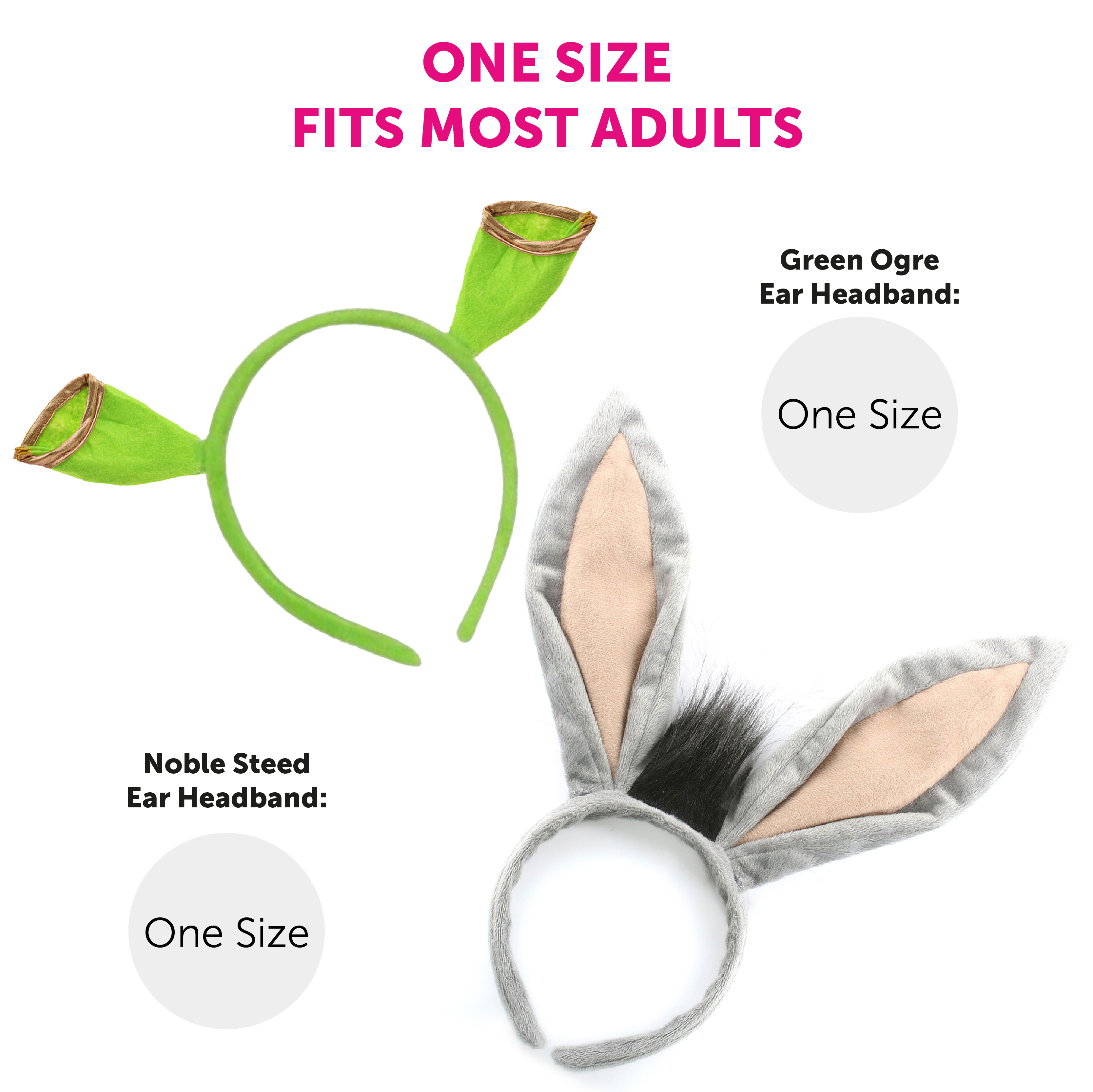 ONE SIZE FITS ALL: Your Green Ogre Ear Headband and Noble Steed Donkey Headband are both designed to fit most Adults comfortably, the perfect addition to your look!