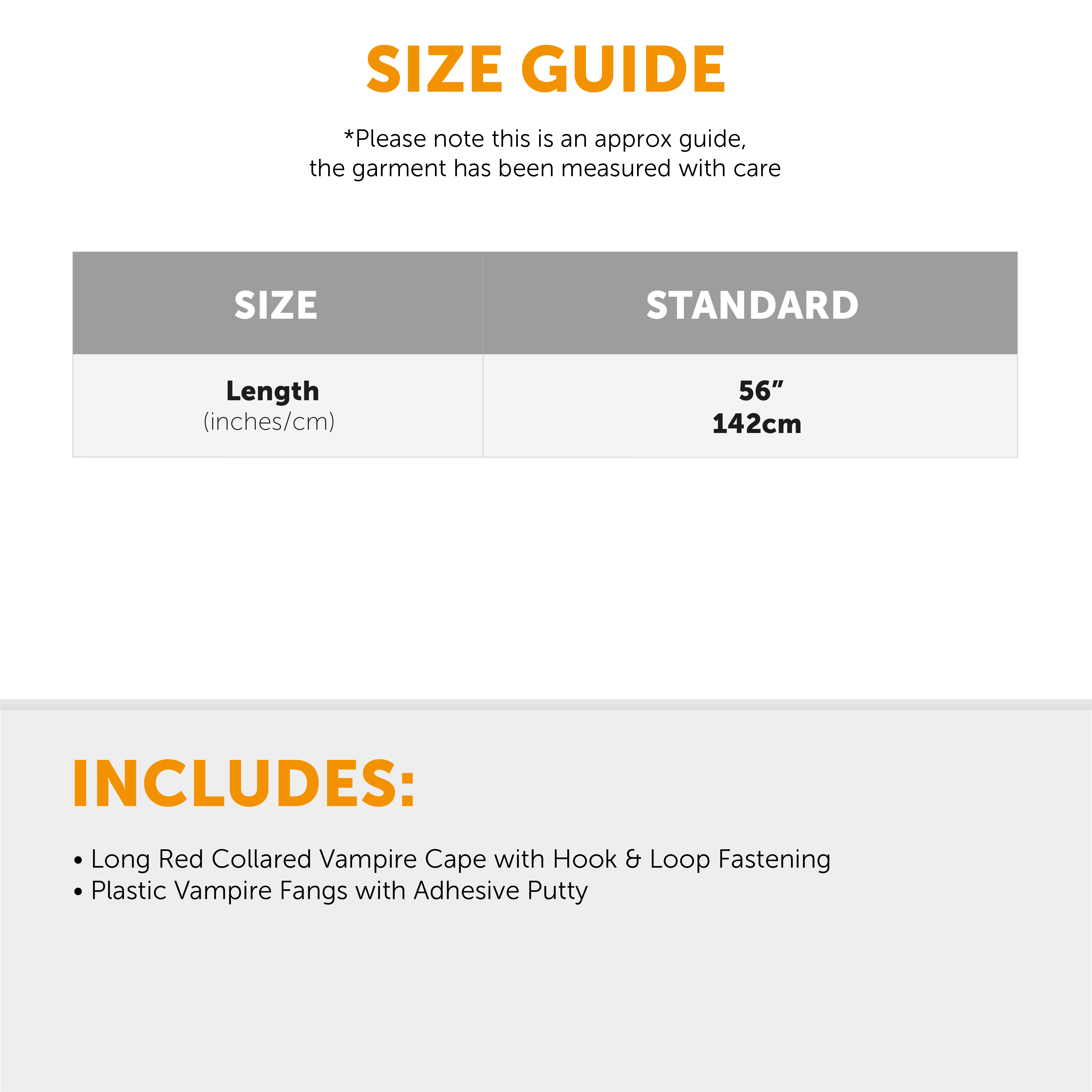 ONE SIZE FITS ALL ADULTS: Regardless of your height or size, our Adults Red Collared Vampire Cape is a 56” (142cm) Long Vampire Cape, being a suitable and perfect size for any Adult to wear comfortably throughout the night and day for your fancy dress events!