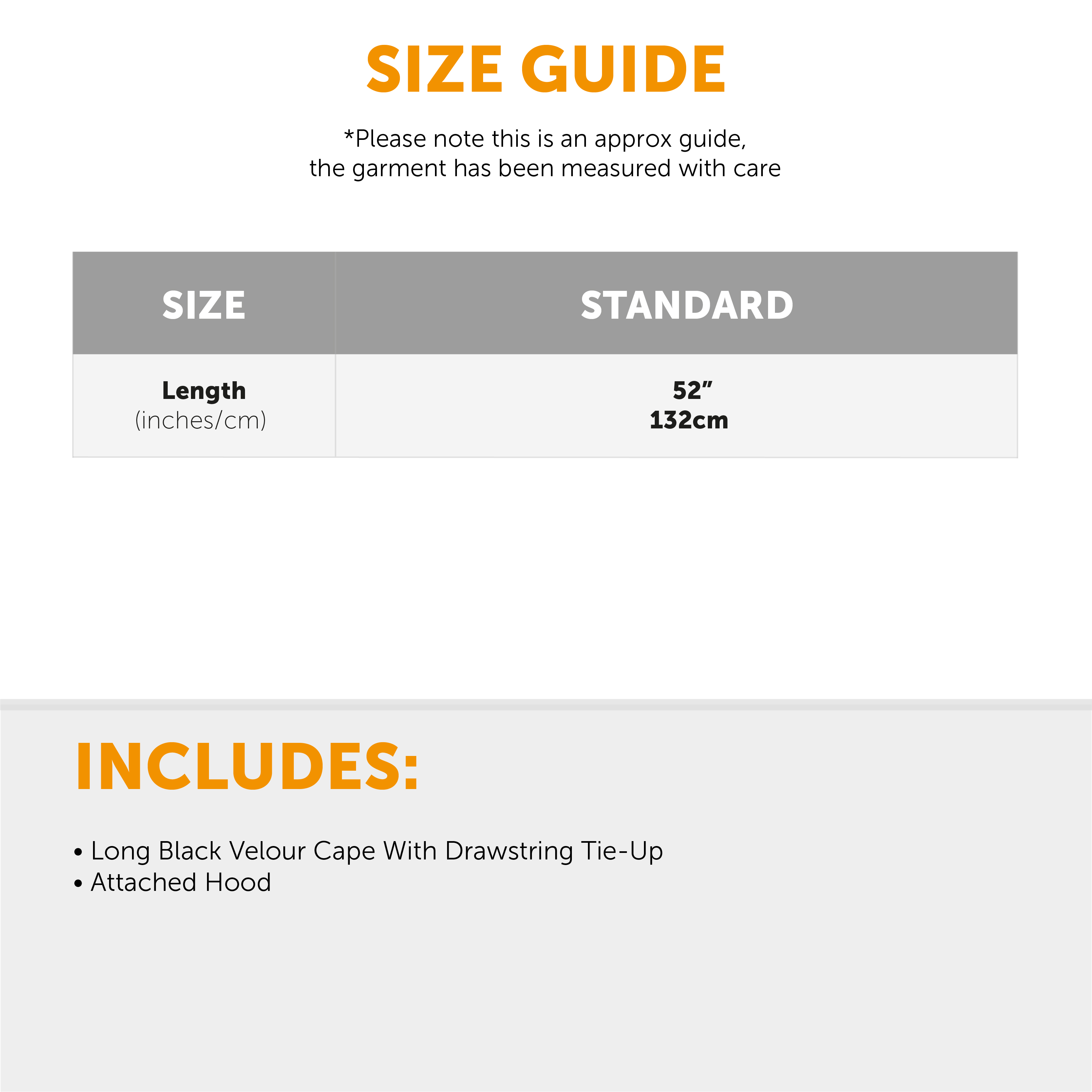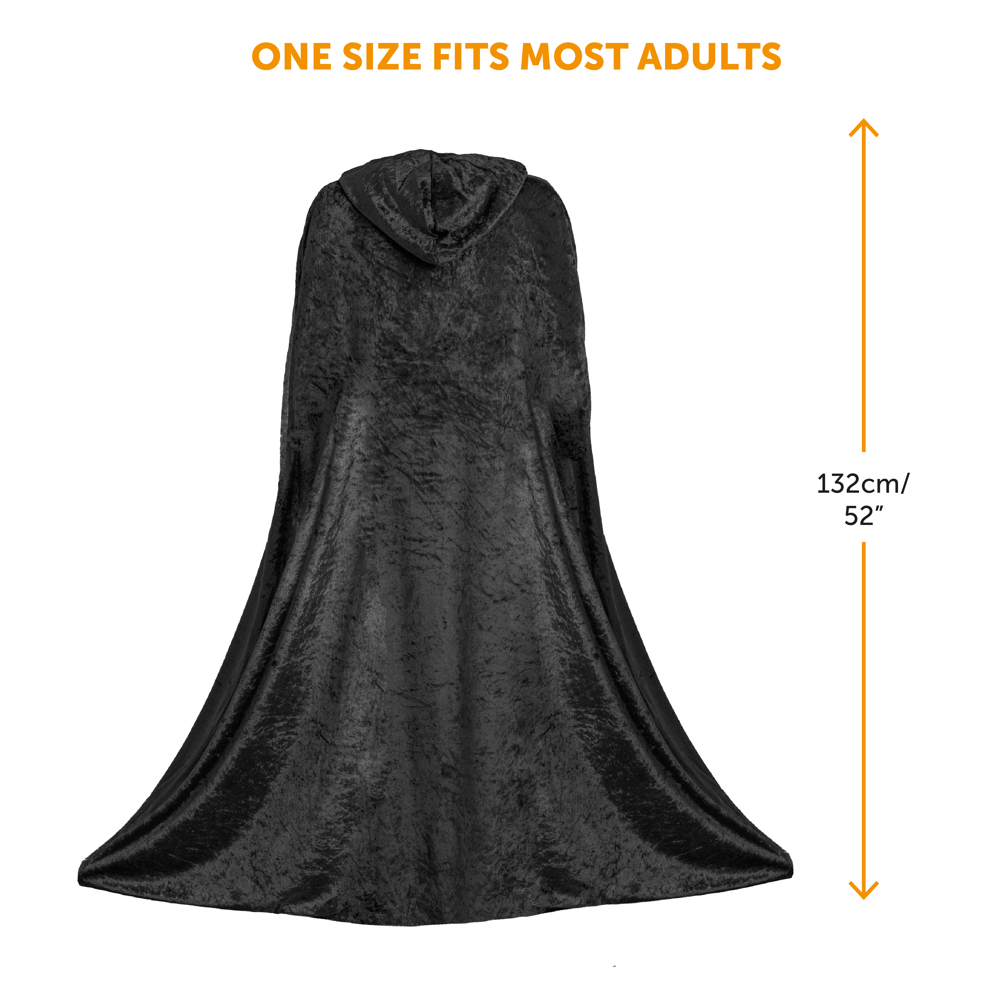 ONE SIZE FITS ALL ADULTS: Regardless of your height or size, our Adults Black Velour Cape is a suitable and perfect size for any adult to wear comfortably throughout the night and day for their fancy dress parties and events!