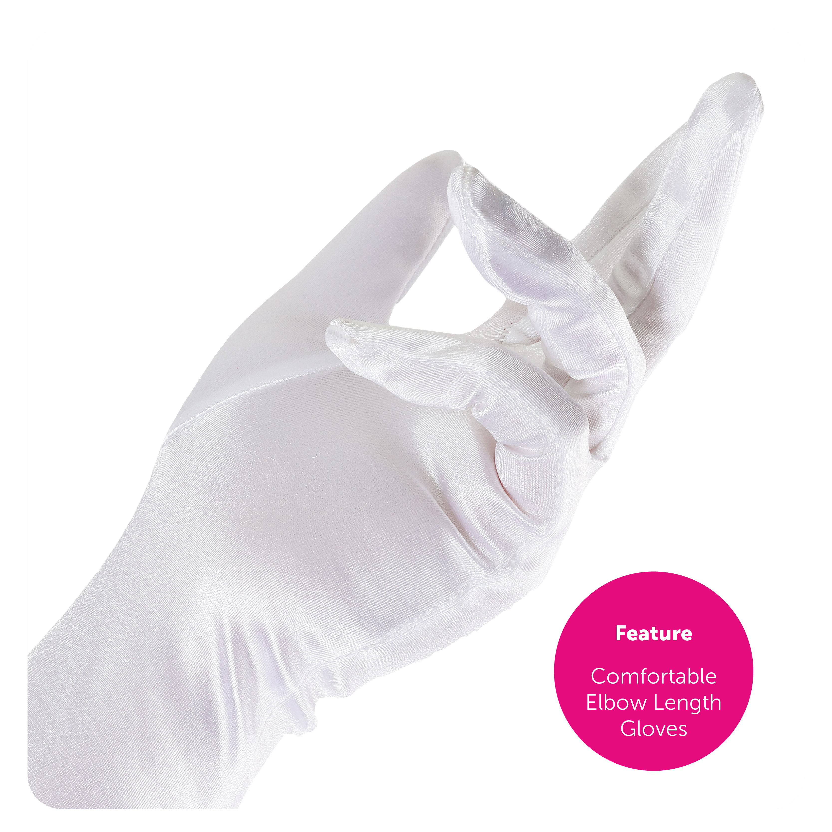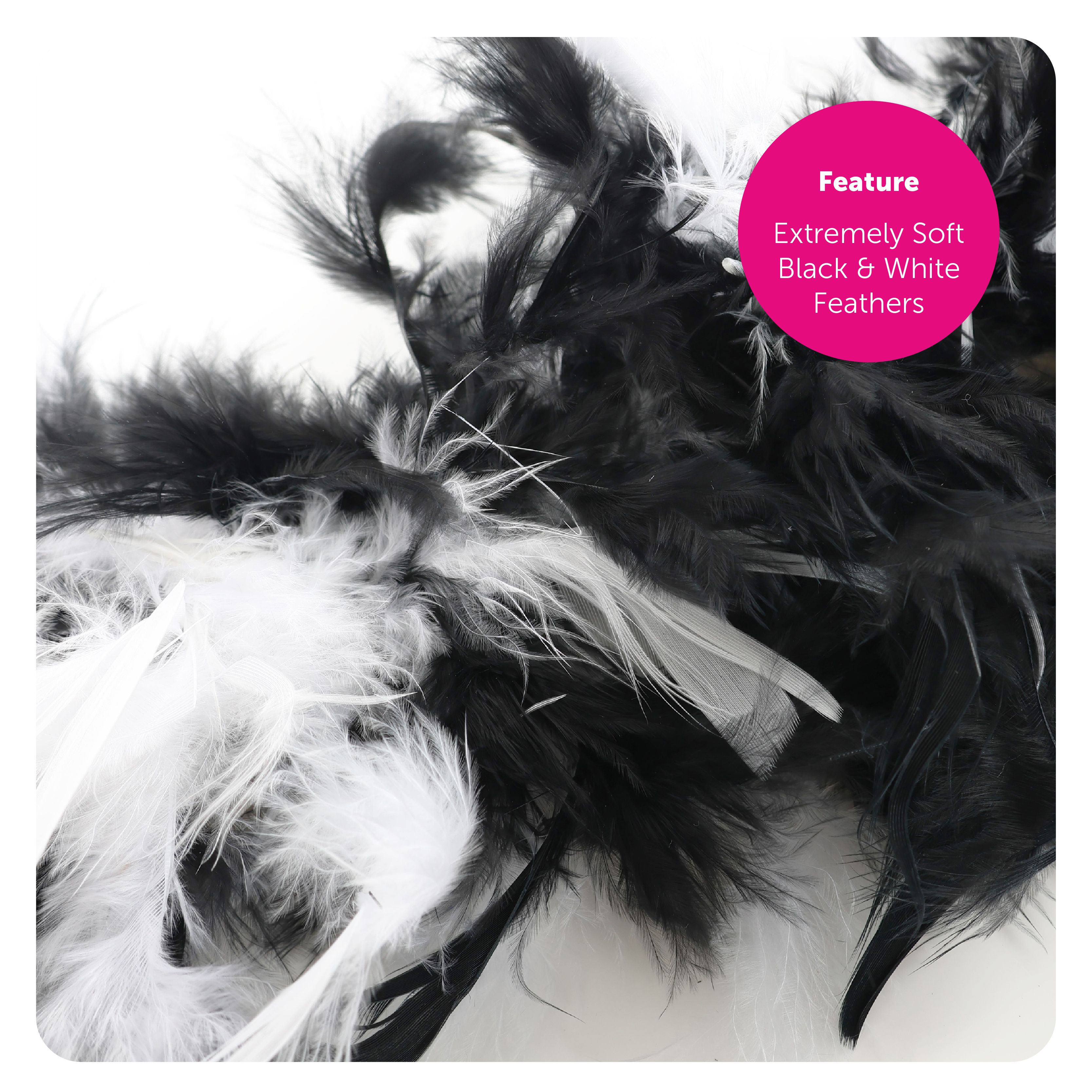GREAT SIZED ACCESSORIES: The Evil Dog Lady Set includes a Black and White Gloves that measure a full length of 50cm (19.5"), and a Black and White Feather Boa that measures a length of 180cm (71"), great sized accessories that can be worn to any event!