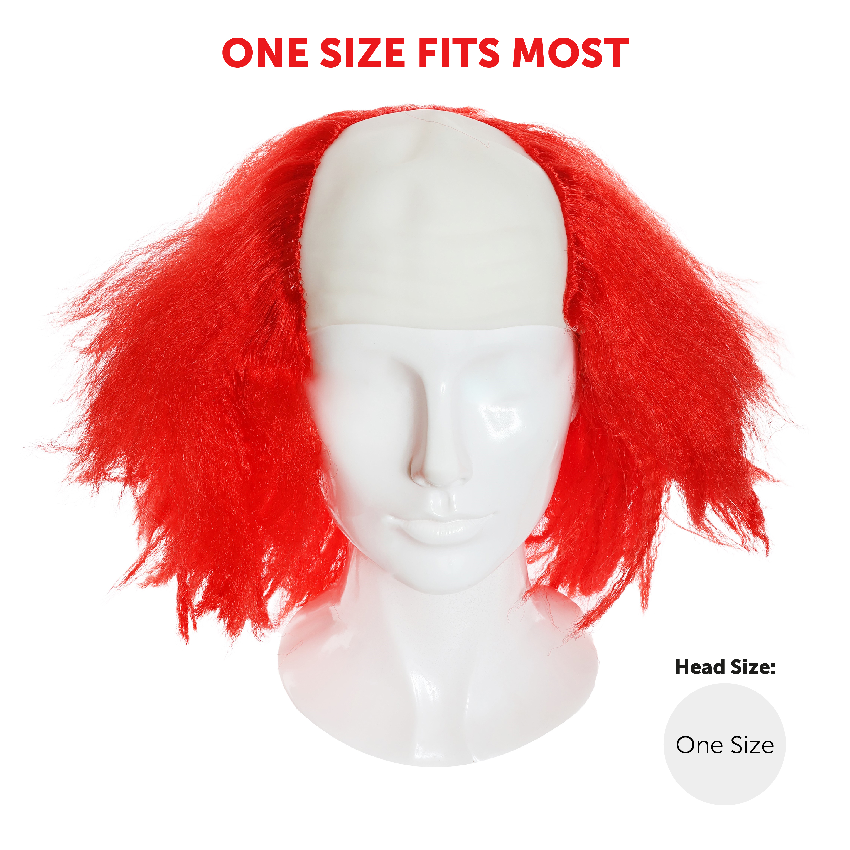 ONE SIZE FITS MOST: Your White Bald Cap with Red Hair attached is designed for most Adults and Children to wear comfortably, being a suitable one size!