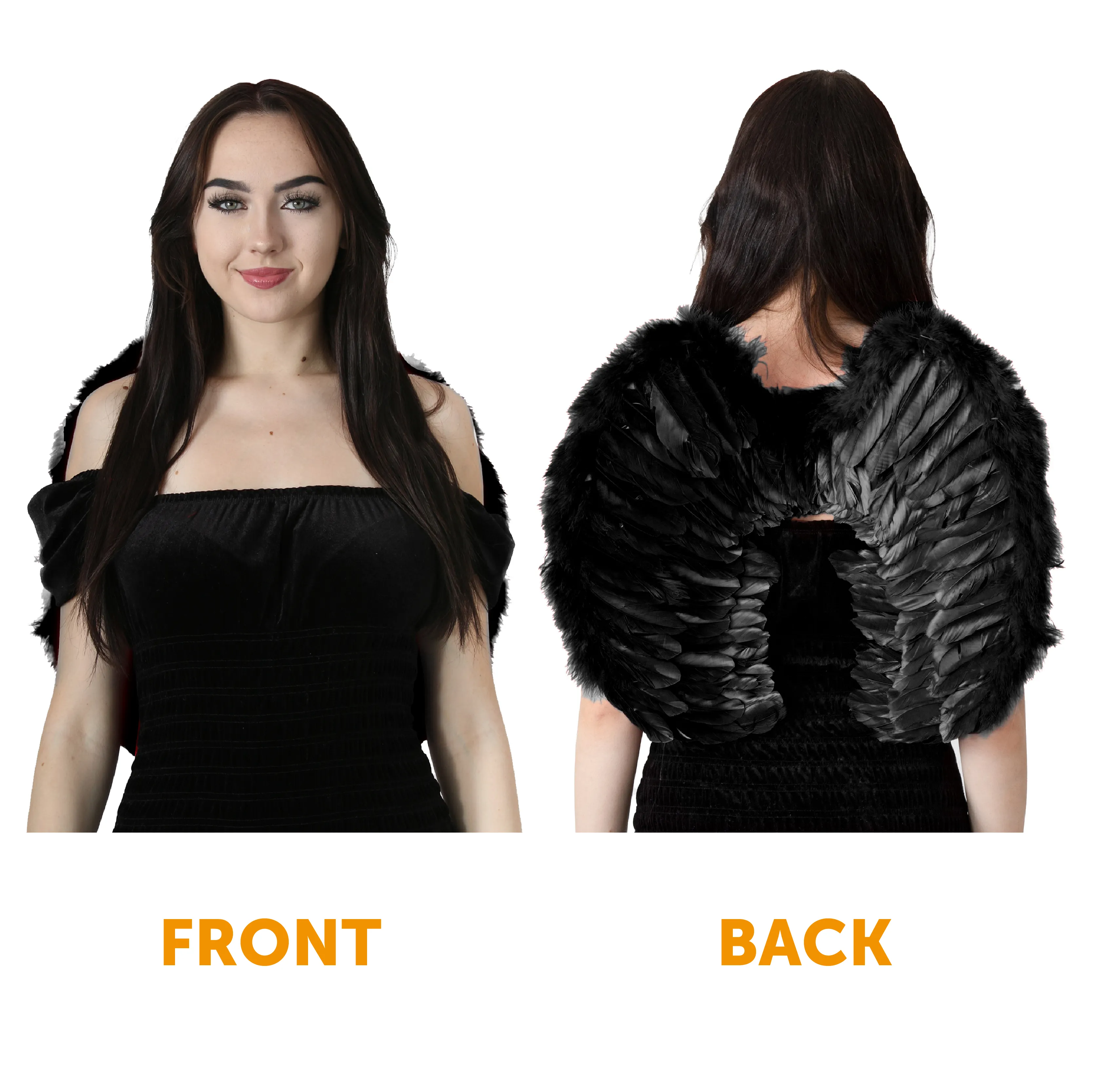 Fly high in style with our Black Feather Wings, crafted from real feathers for a luxurious and authentic look.