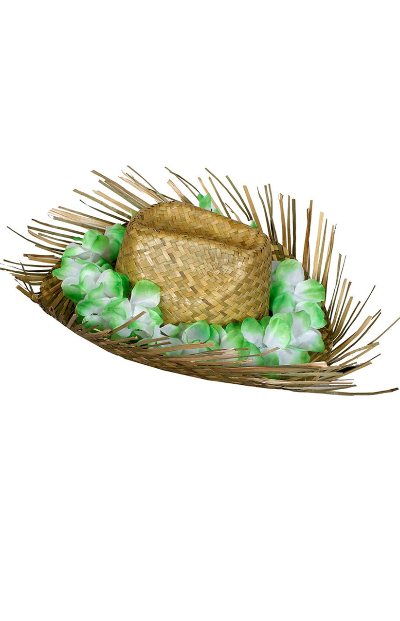 Finish off your Hawaiian Costume with one of our Straw Beachcomber Hat with Attached Lei