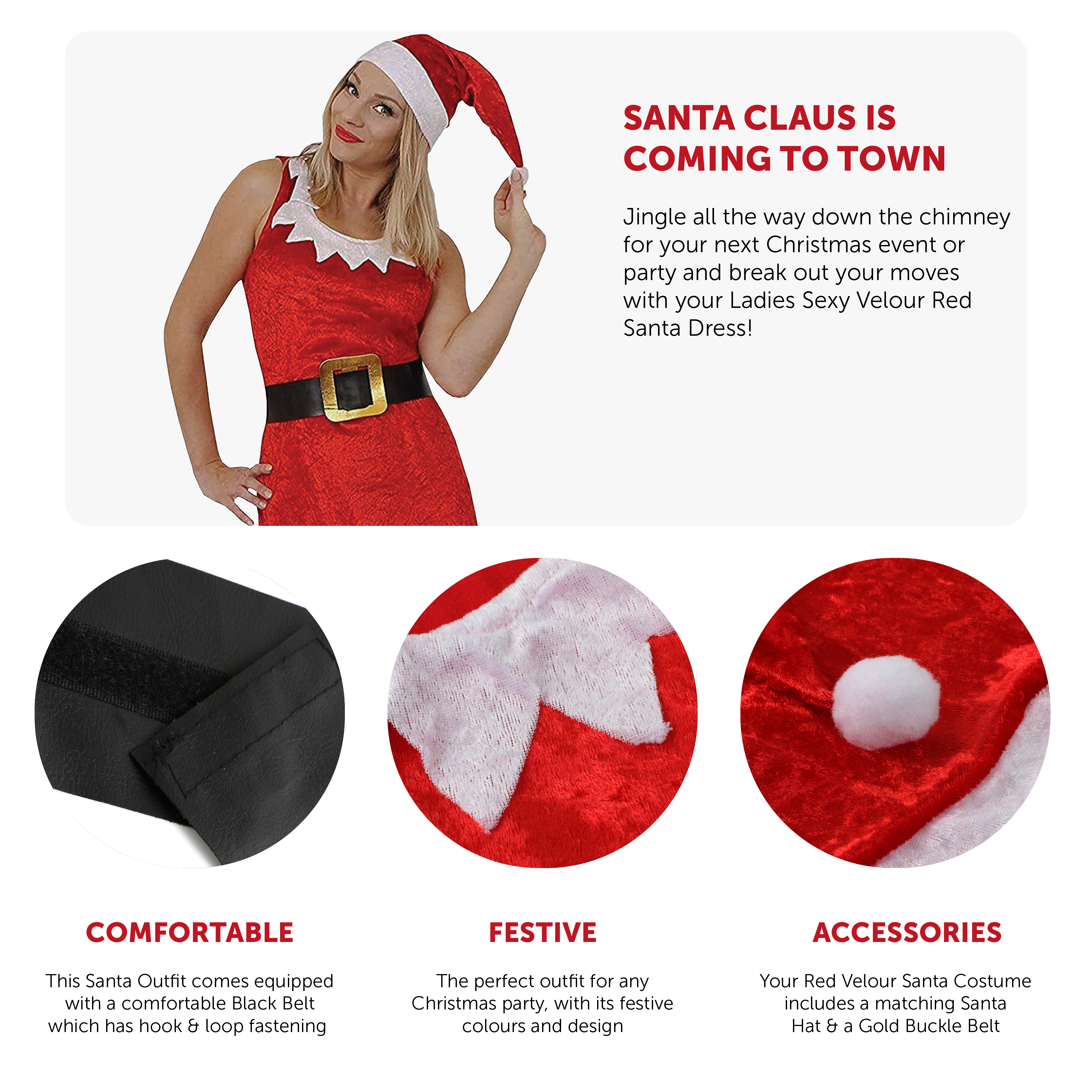 PERFECT FOR CHRISTMAS AND HEN NIGHT FANCY DRESS: Whether attending a Christmas party or out for a Hen Night, then our Ladies Sexy Velour Red Santa Dress is perfect for the Christmas season of parties!