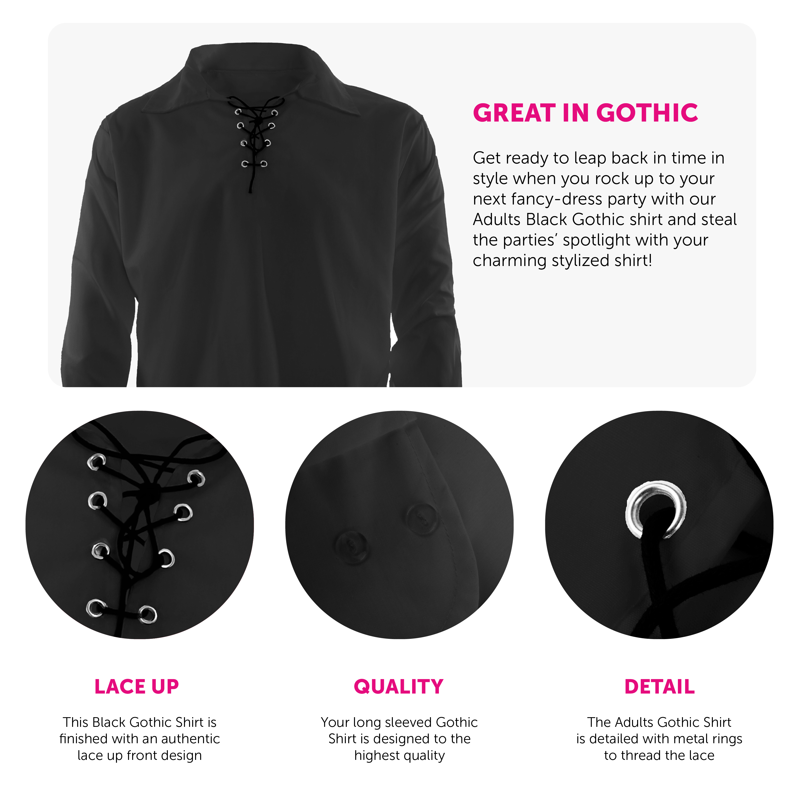PERFECT FOR GOTHIC AND STEAMPUNK FANCY DRESS: Whether you’re completing a Gothic fancy dress costume set off, or adding a final touch to your Steampunk costume, you’ll be sure to find what you’re looking for with our Adults Black Gothic Shirt!
