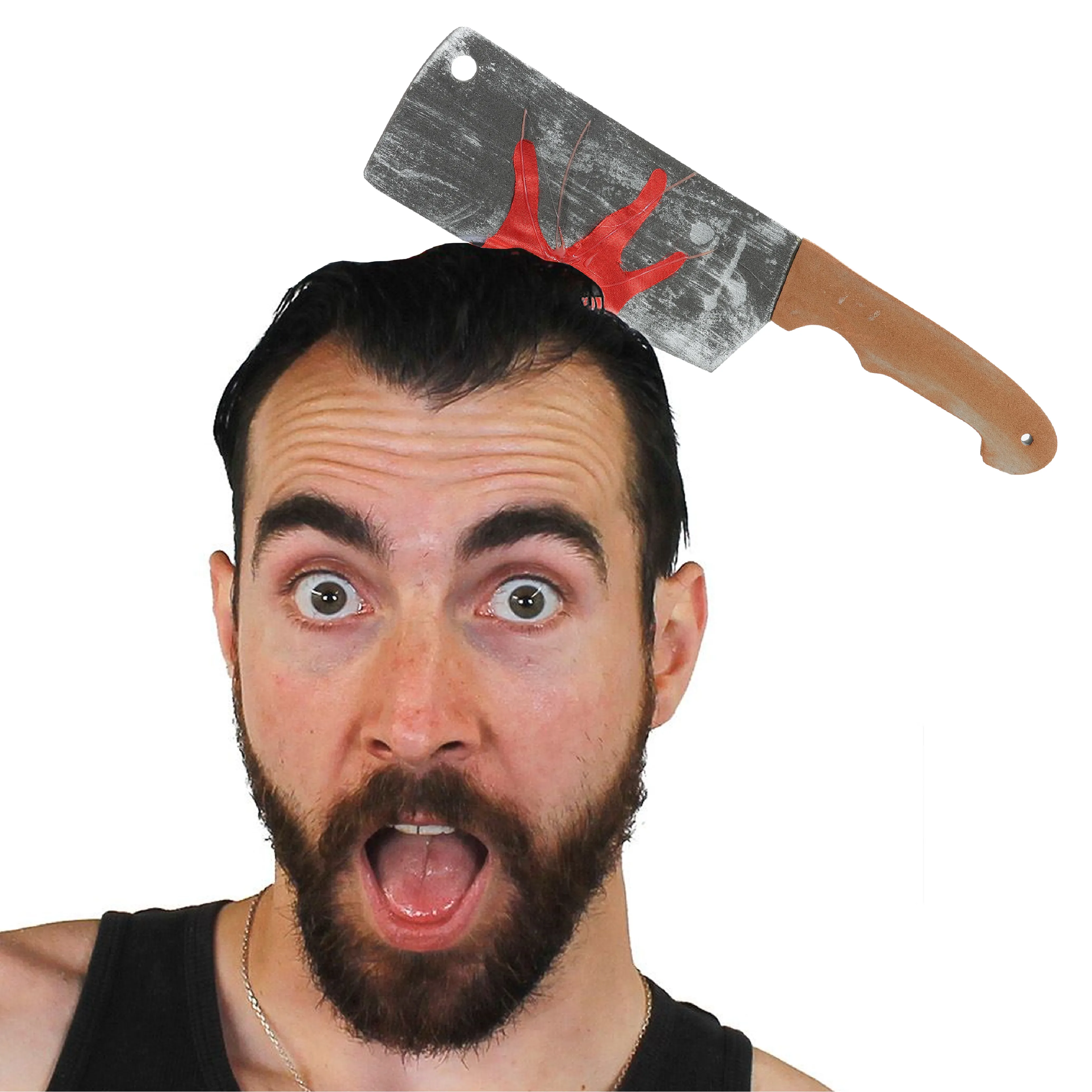 Slice your way through the party with our Halloween Cleaver Headband — a headband featuring a realistic blood-covered cleaver that gives the illusion of a gruesome head wound!