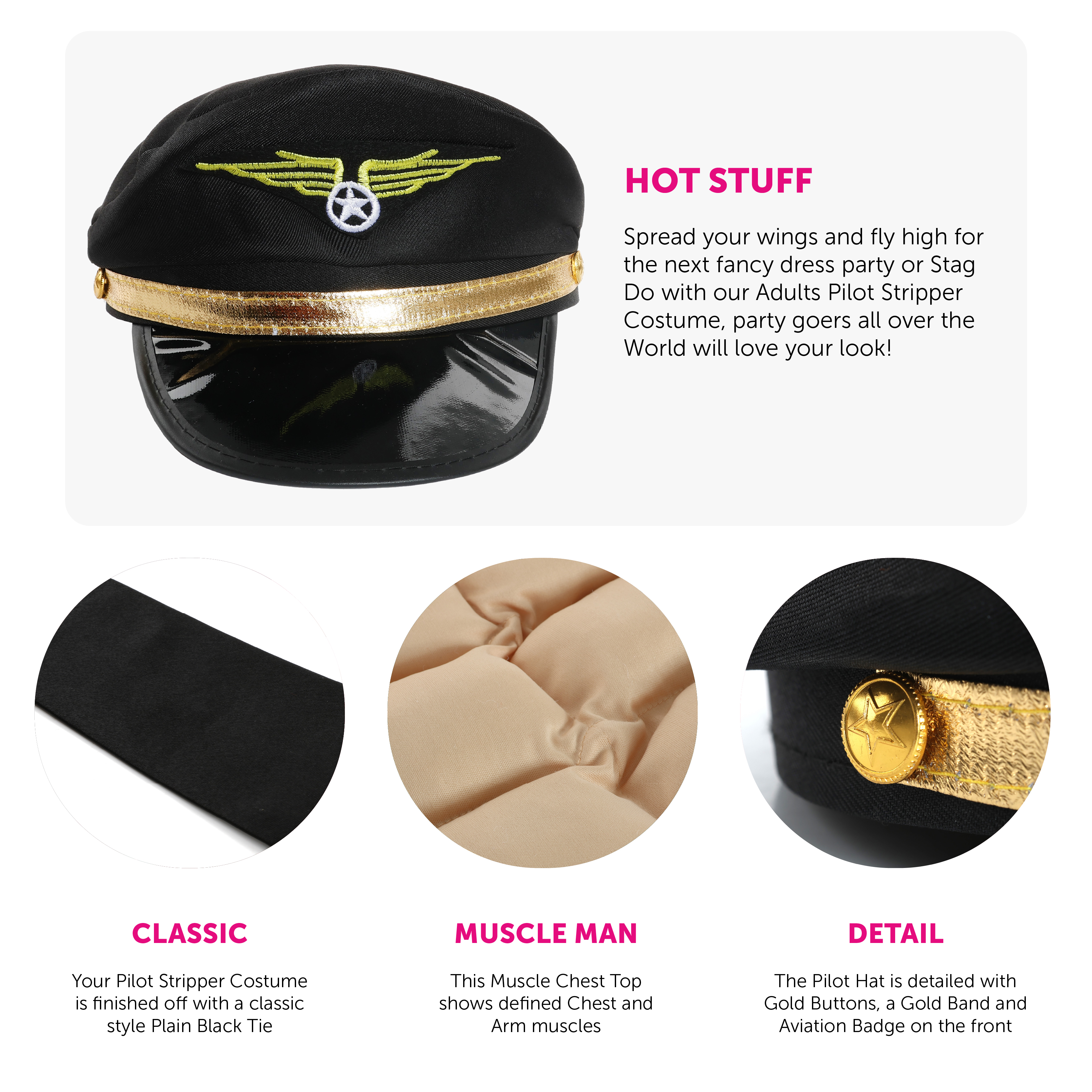 ADULTS PILOT STRIPPER COSTUME: Spread your wings and fly high for the next fancy dress party or Stag Do with our Adults Pilot Stripper Costume, party goers all over the World will love your look!