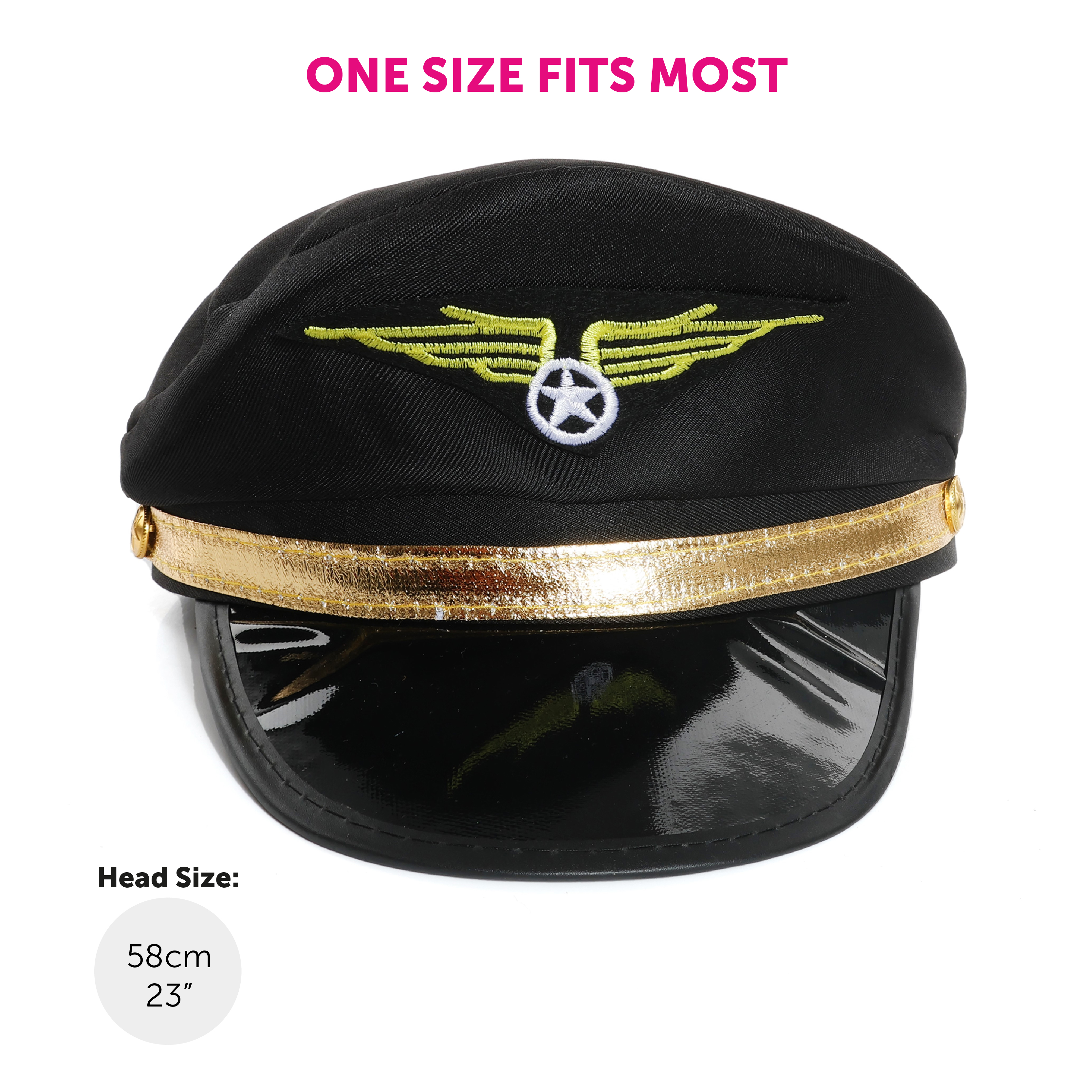 ONE SIZE FITS MOST: Your Adults Pilot Hat is one size fits most, being suitable for a head size of up to 58cm (23"), this Hat is a comfortable fit all day and night!