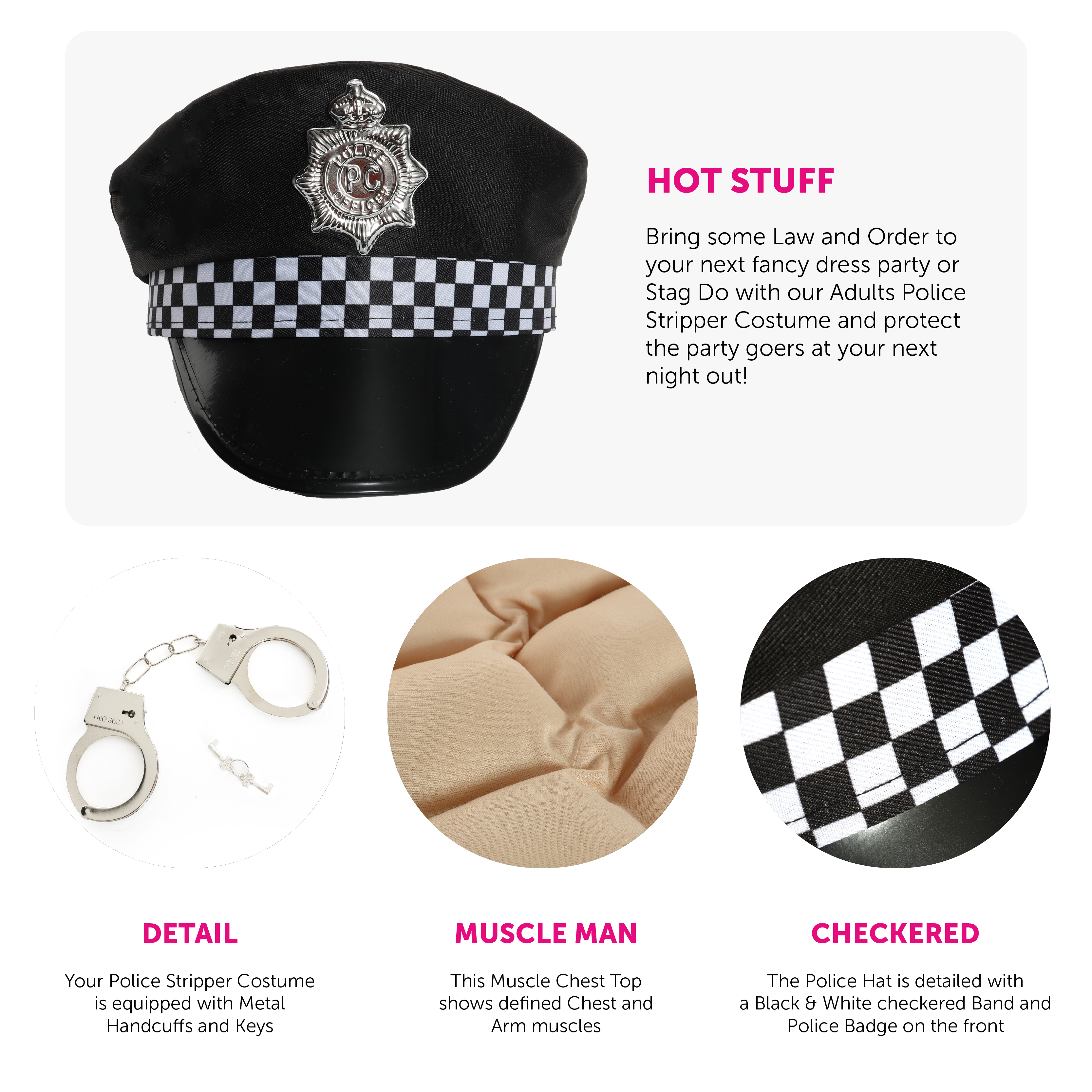 ADULTS POLICE STRIPPER COSTUME: Bring some Law and Order to your next fancy dress party or Stag Do with our Adults Police Stripper Costume and protect the party goers at your next night out!