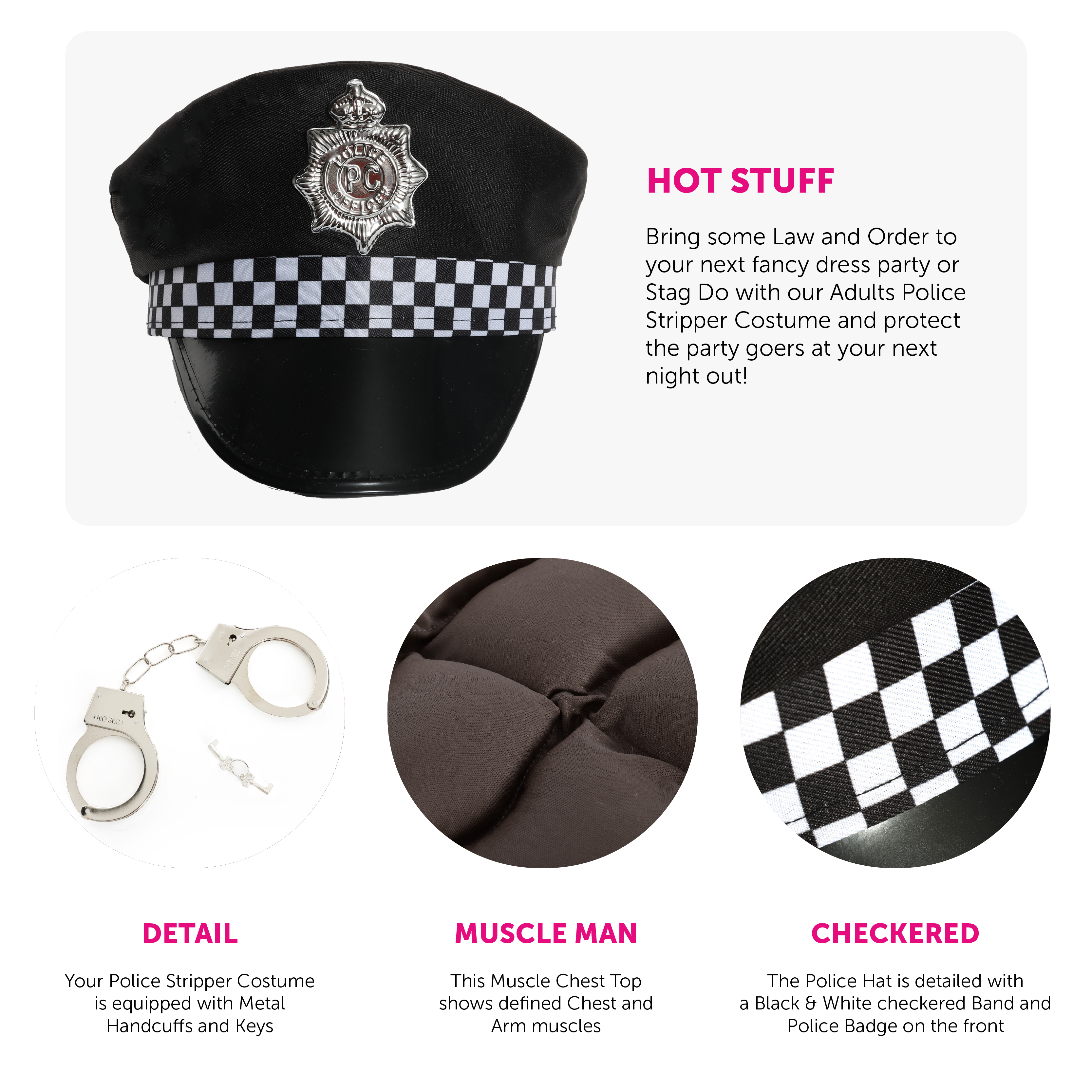 ADULTS POLICE STRIPPER COSTUME: Bring some Law and Order to your next fancy dress party or Stag Do with our Adults Police Stripper Costume and protect the party goers at your next night out!