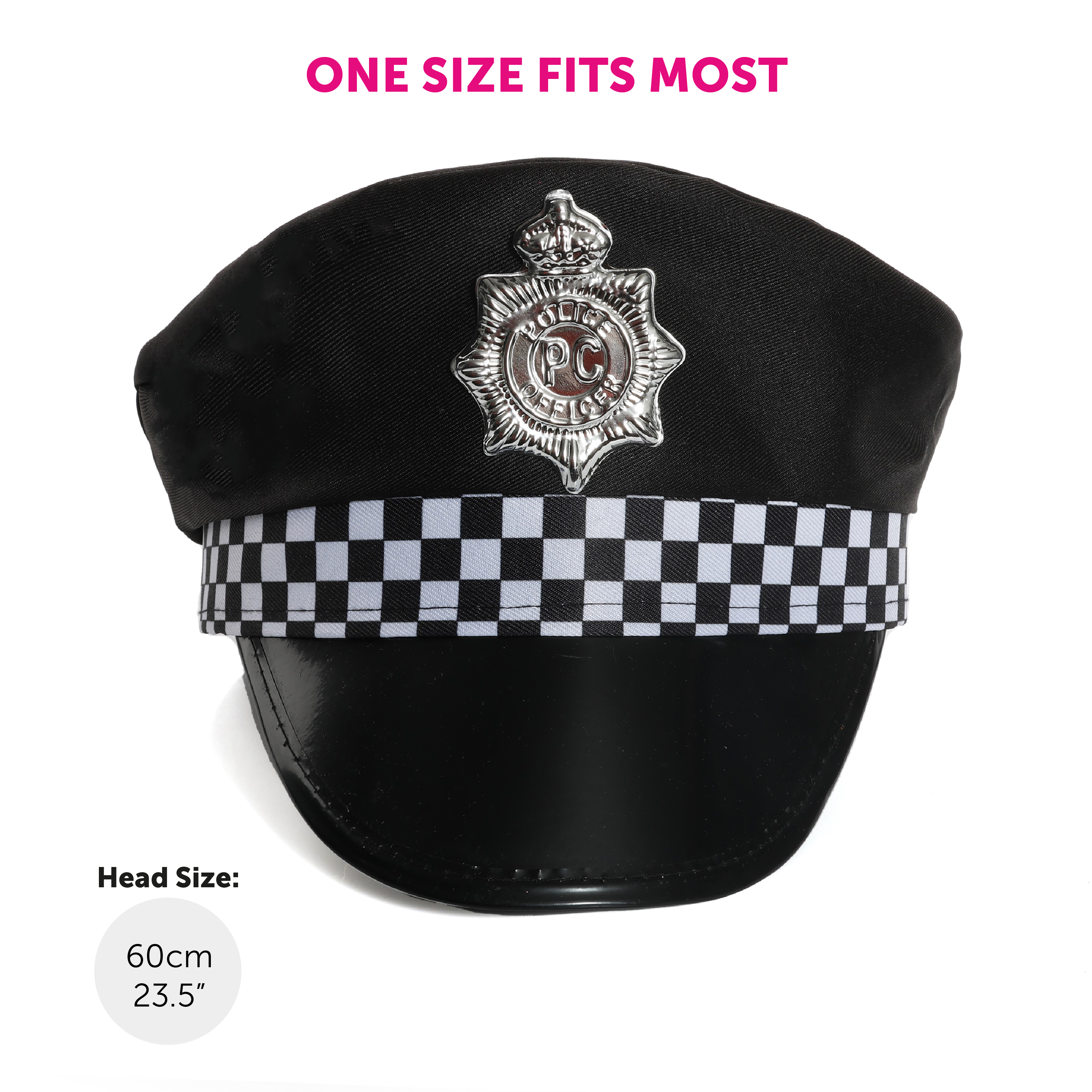 ONE SIZE FITS MOST: Your Adults Police Hat is one size fits most, being a suitable head size of 60cm (23.5"), this Hat is a comfortable fit all day and night!