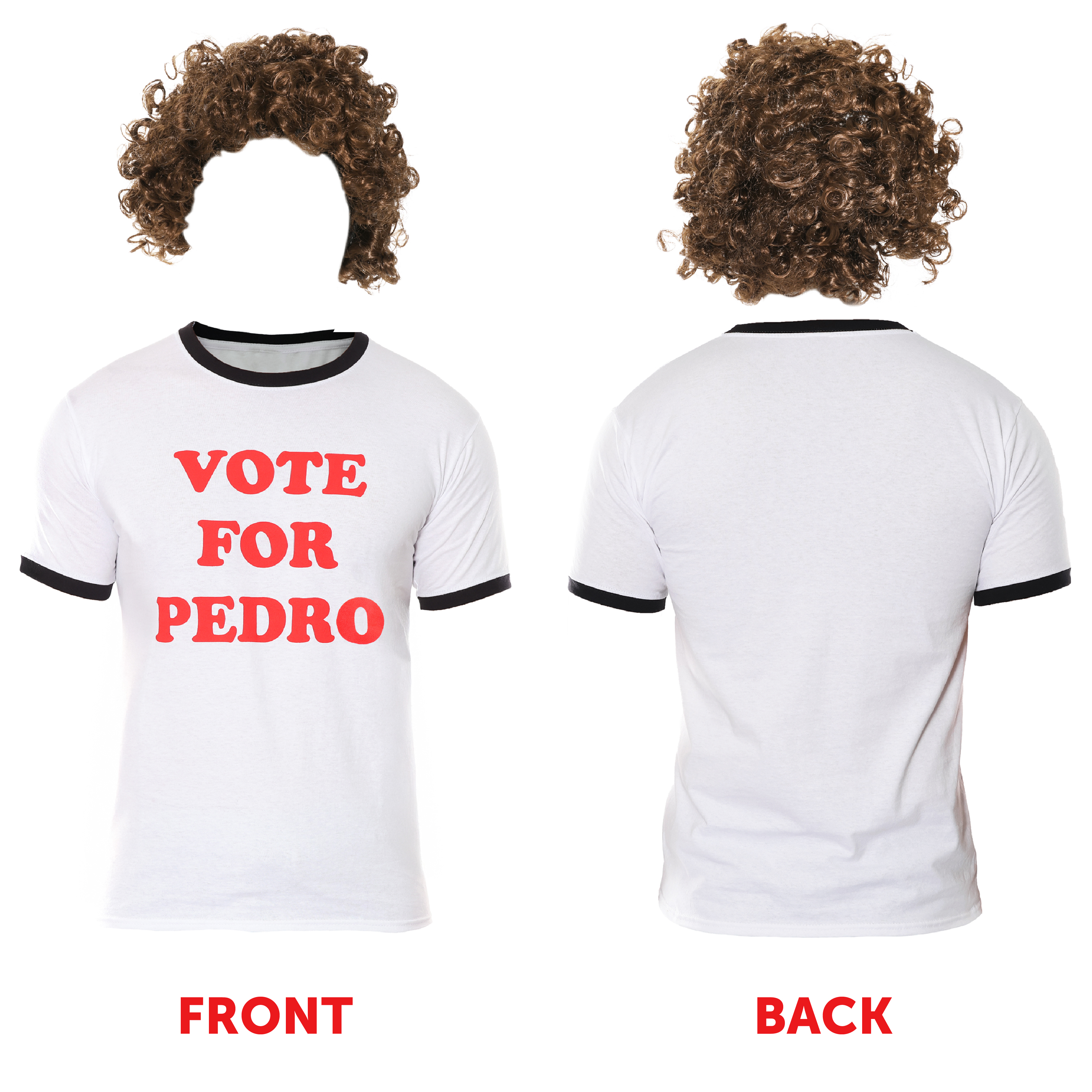 Napoleon Dynamite Costume for Adults – Includes Vote for Pedro T-Shirt, brown curly wig, and retro glasses