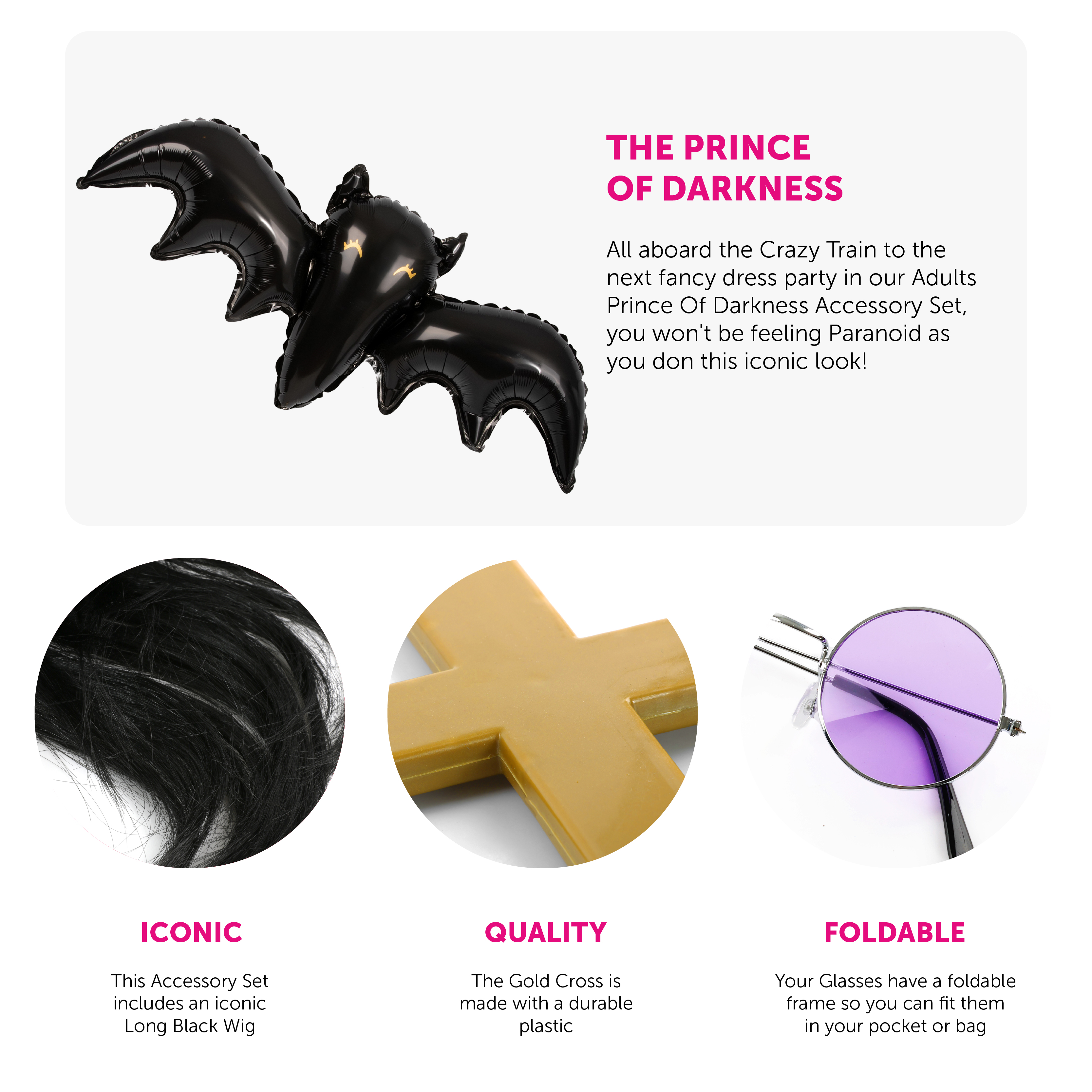 PRINCE OF DARKNESS ACCESSORY SET: All aboard the Crazy Train to the next fancy dress party in our Adults Prince Of Darkness Accessory Set, you won't be feeling Paranoid as you don this iconic look!