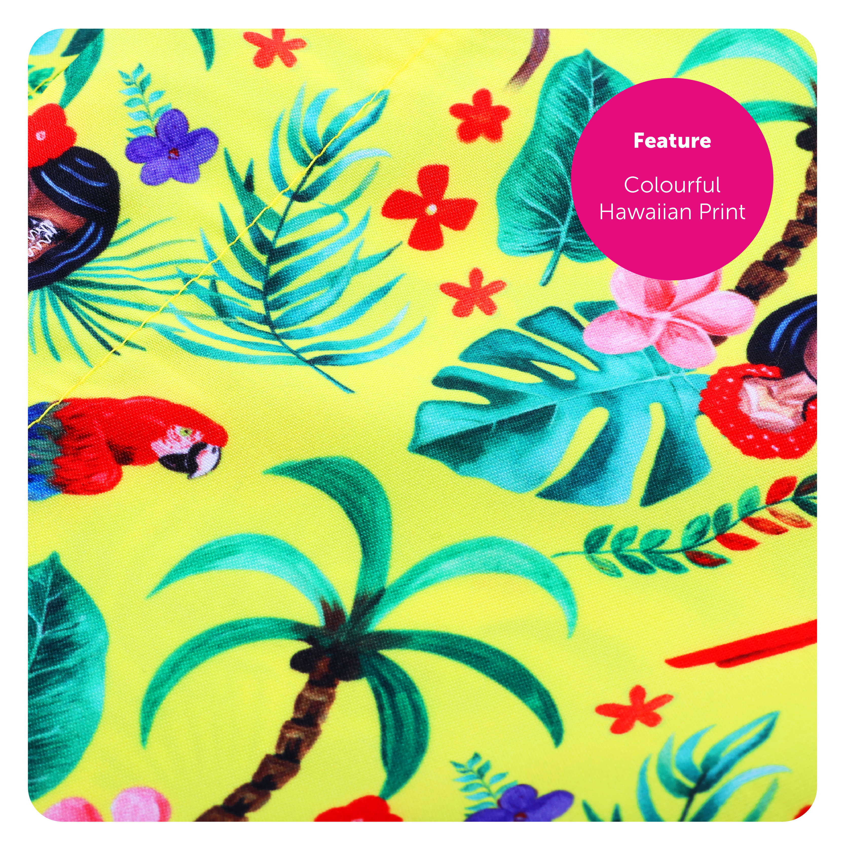 AVAILABLE IN MULTIPLE SIZES: Your Yellow Hawaiian Shirt is available in multiple sizes from Small – XX-Large: Small - Chest 31/35" (79/89cm), Length 24" (61cm) | Medium - Chest 34/38” (86/97cm), Length 25" (63cm) | Large - Chest 38/42" (96/106cm), Length 25" (63cm) | X-Large - Chest 42/46" (112/117cm), Length 26" (67cm) | XX-Large - Chest 46.5" (118cm), Length 29" (74cm)