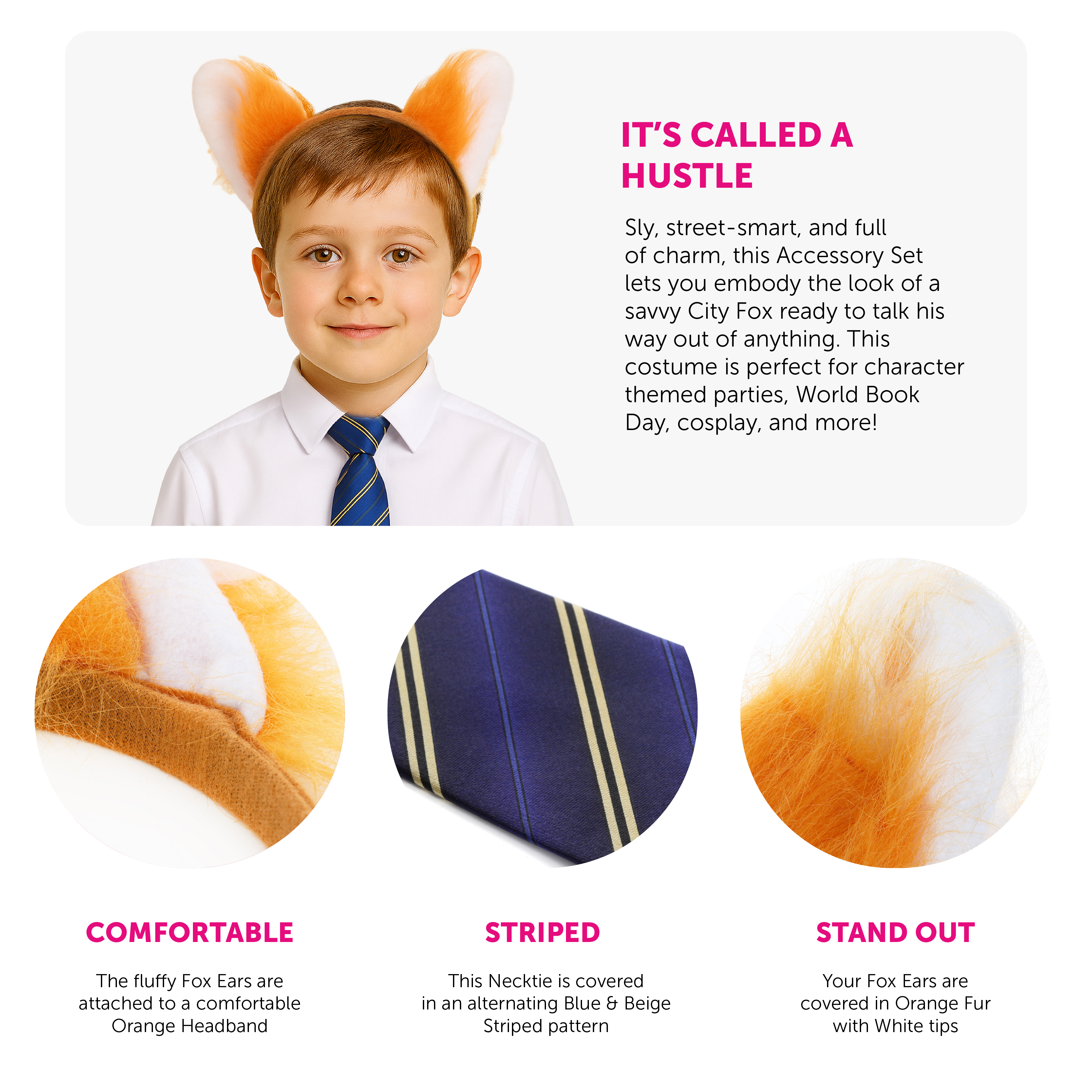 CITY FOX ACCESSORY SET: Sly, street-smart, and full of charm, this Accessory Set lets you embody the look of a savvy City Fox ready to talk his way out of anything. This costume is perfect for character-themed parties, World Book Day, cosplay, and more!