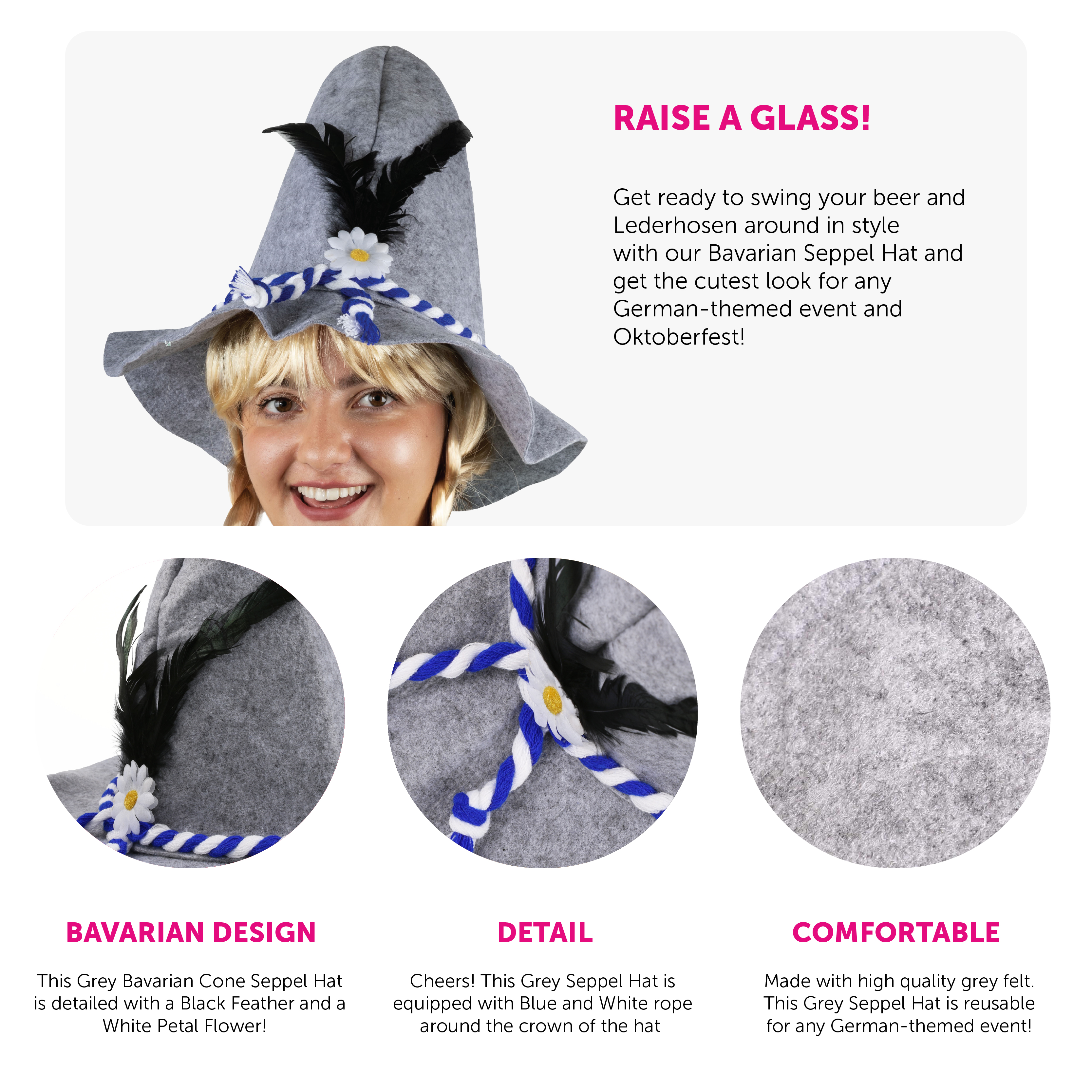 PERFECT FOR OKTOBERFEST AND BAVARIAN FANCY DRESS: Whether you’re attending an Oktoberfest event or adding the finishing touches to your Bavarian Fancy Dress costume, make sure it’s with your Grey Bavarian Seppel Hat!