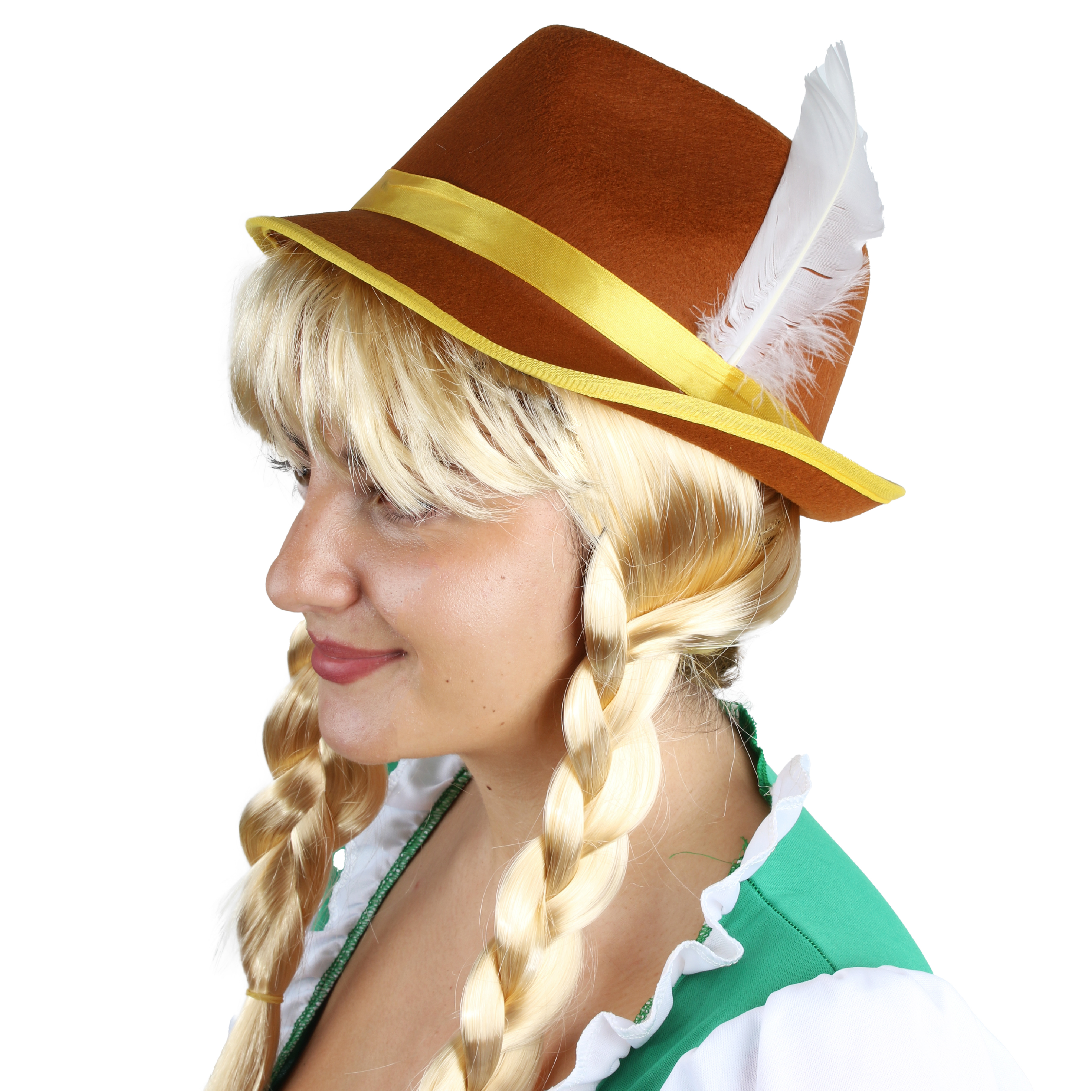 - BROWN BAVARIAN HAT & BLONDE PLAIT WIG: Celebrate any German themed event and Oktoberfest in style and high spirits with our Brown Bavarian Hat and Blonde Plait Wig Set, and swing that Beer Stein around with ease and joy!