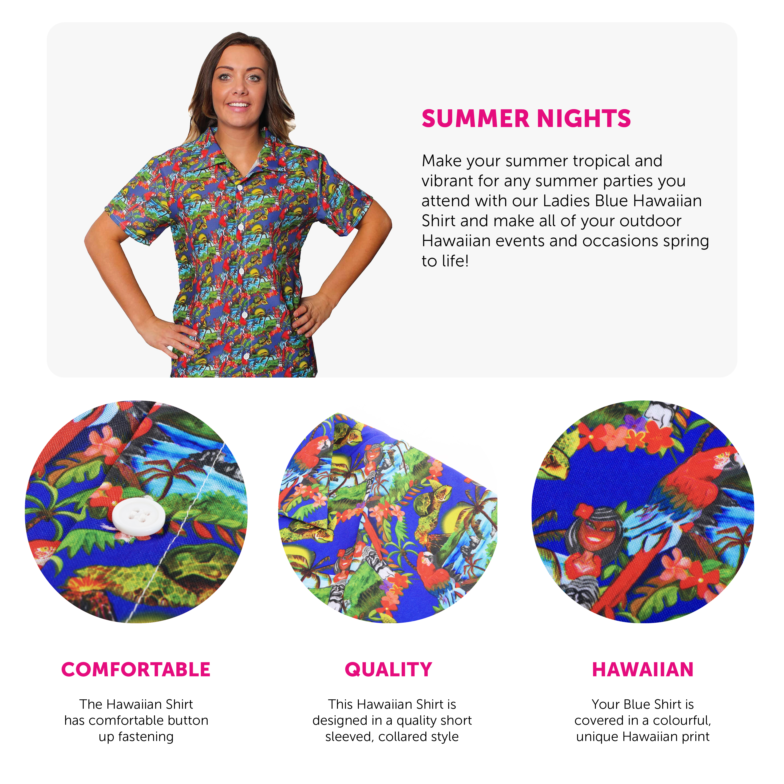 LADIES BLUE HAWAIIAN SHIRT: Make your summer tropical and vibrant for any summer parties you attend with our Ladies Blue Hawaiian Shirt and make all of your outdoor Hawaiian events and occasions spring to life!