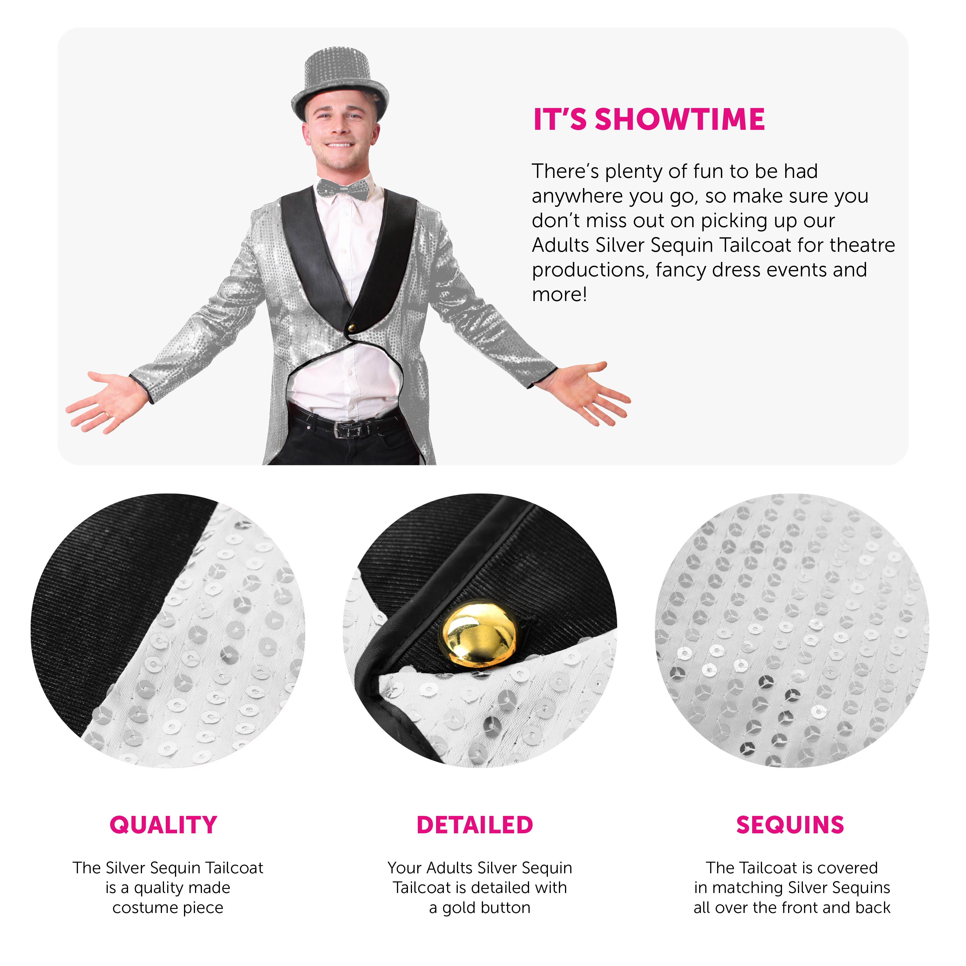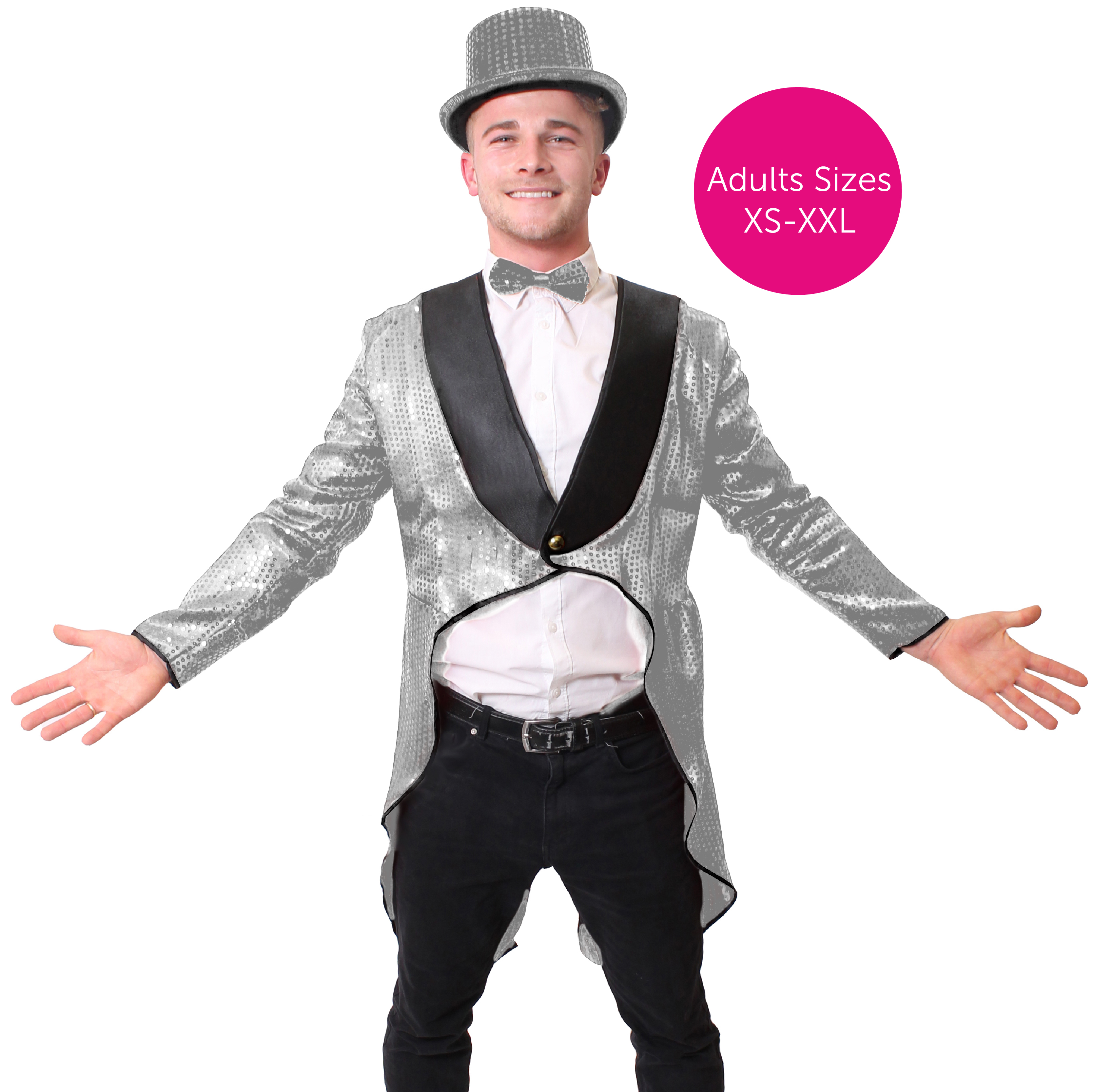 ADULTS SILVER SEQUIN TAILCOAT: There’s plenty of fun to be had anywhere you go, so make sure you don’t miss out on picking up our Adults Silver Sequin Tailcoat for theatre productions, fancy dress events and more!