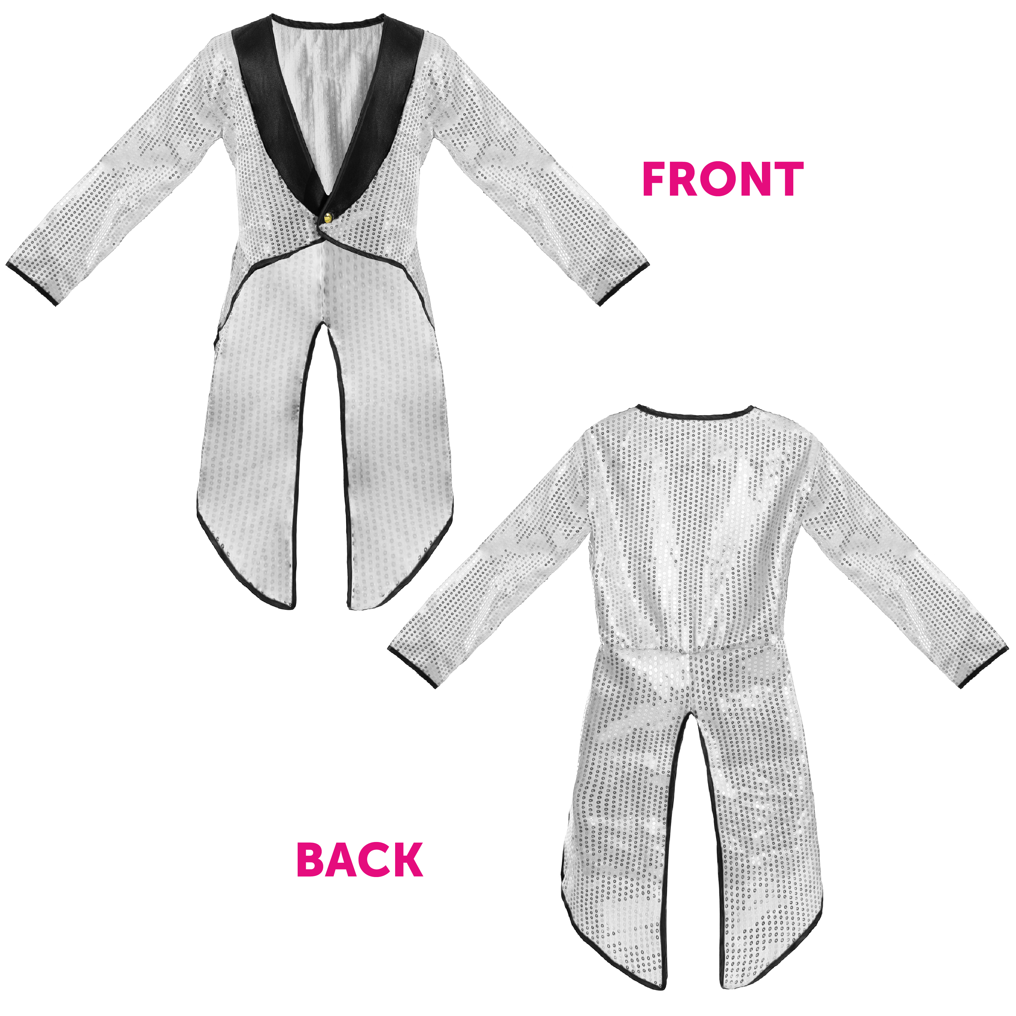 GREAT QUALITY: With its iconic design, this Silver Sequin Tailcoat is a great quality piece to add to any fancy dress outfit and help you steal the show!