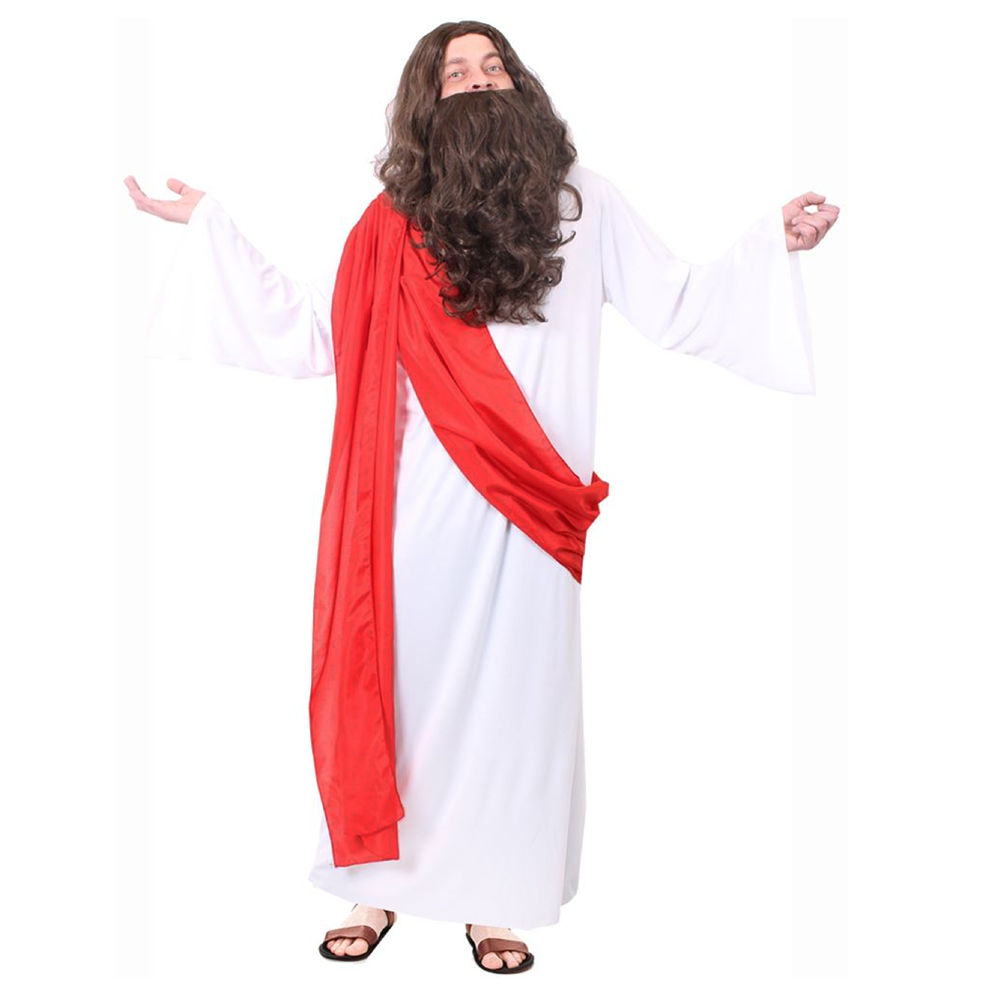 ADULTS JESUS COSTUME WITH WIG & BEARD: Bless the ground you walk upon and perform a miracle of a lifetime at the next fancy dress occasion dressed as the miracle man himself with our Adults Jesus Costume!