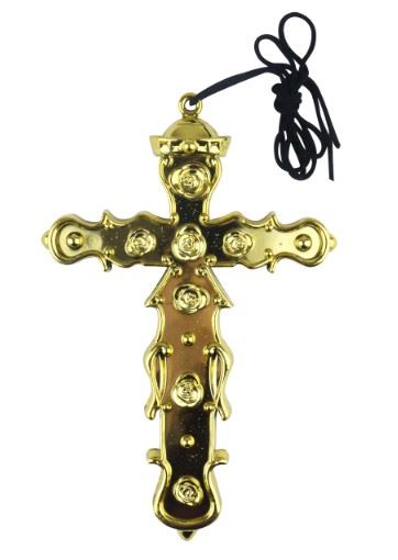 Add dramatic flair to your costume or outfit with this Large Gold Cross Necklace. Perfect for fancy dress, theatrical performances, religious-themed costumes, or Halloween, this bold accessory features an ornate gold-tone design that’s sure to stand out.
