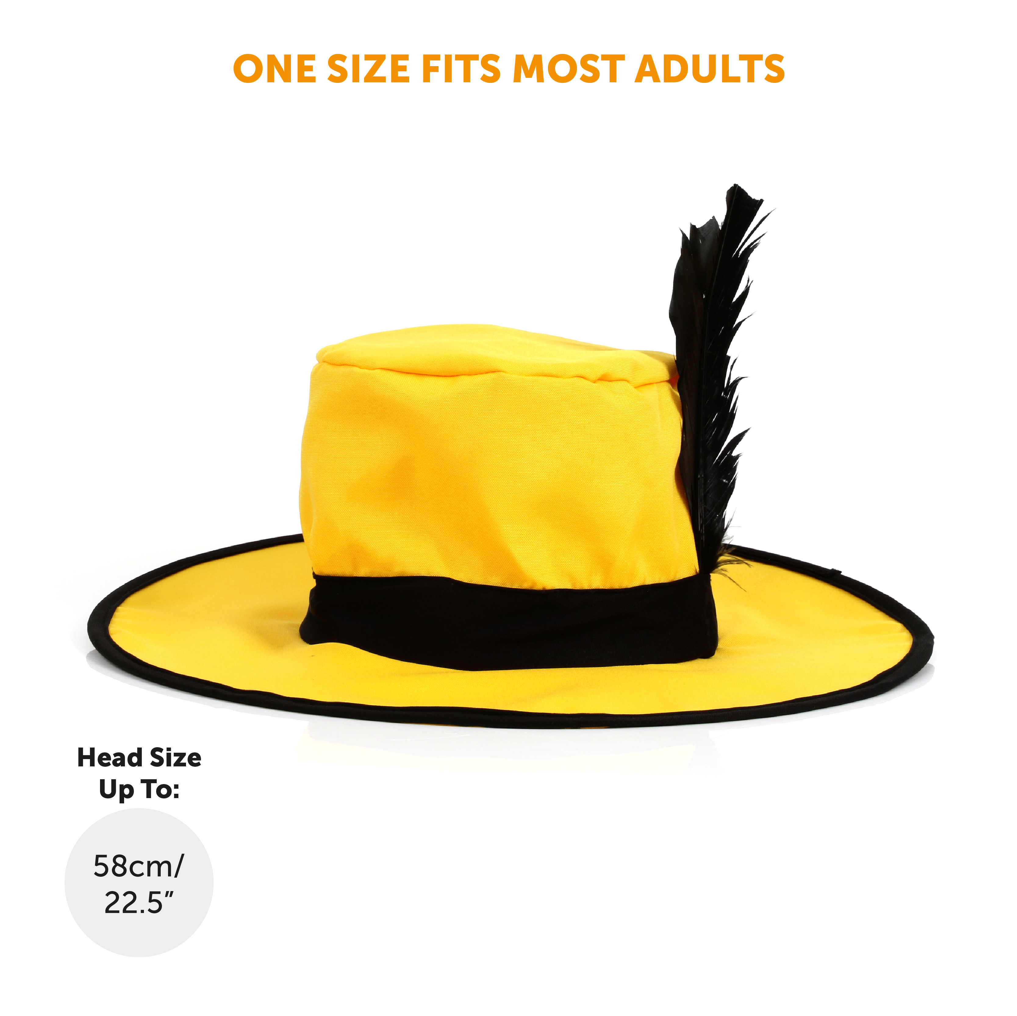 - Yellow Fedora Hat with Black Band and Feather