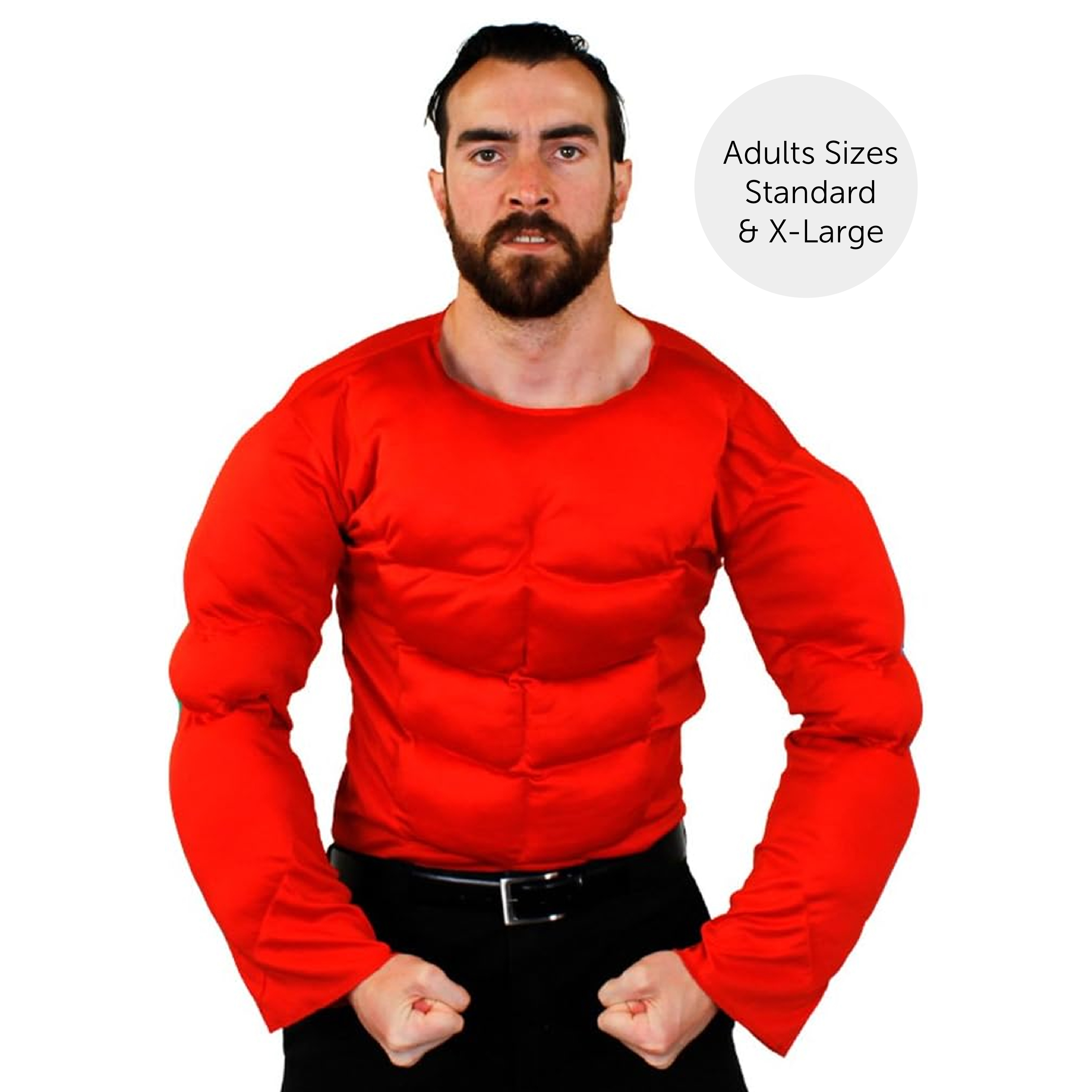 AVAILABLE IN TWO SIZES: Your Red Muscle Chest Costumes will be available in two sizes, Standard and X-Large: Standard - Chest Up to 46" (116.5cm), Length 25" (63.5cm) | X-Large - Chest Up to 52" (132cm), Length 25" (63.5cm)