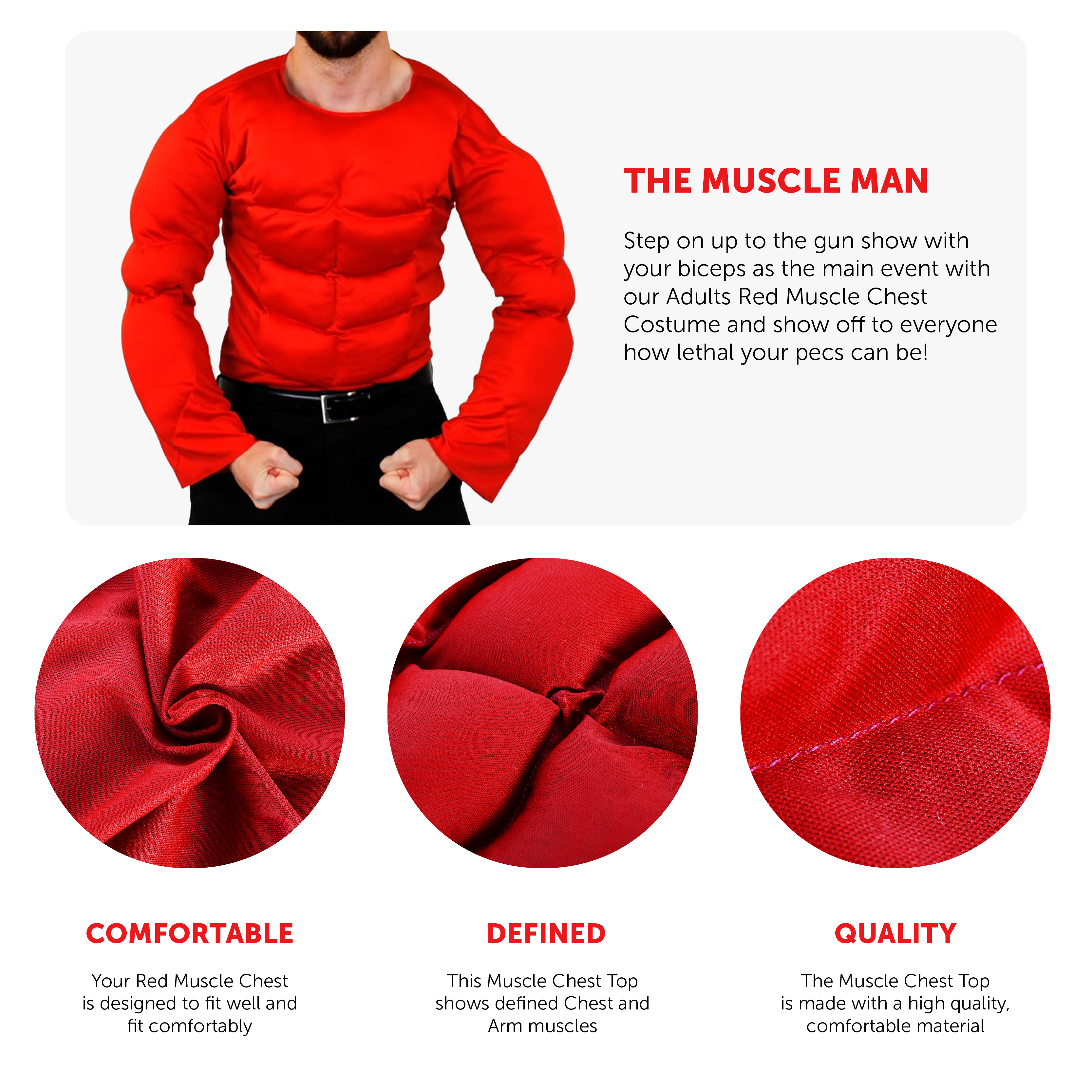PERFECT FOR TV, FILM, AND NOVELTY EVENTS: Whether you’re playing the role of your own loveable 80’s action hero, or for a novelty costume to dress up as, you’ll be the main event regardless in our Adults Red Muscle Chest Costume!