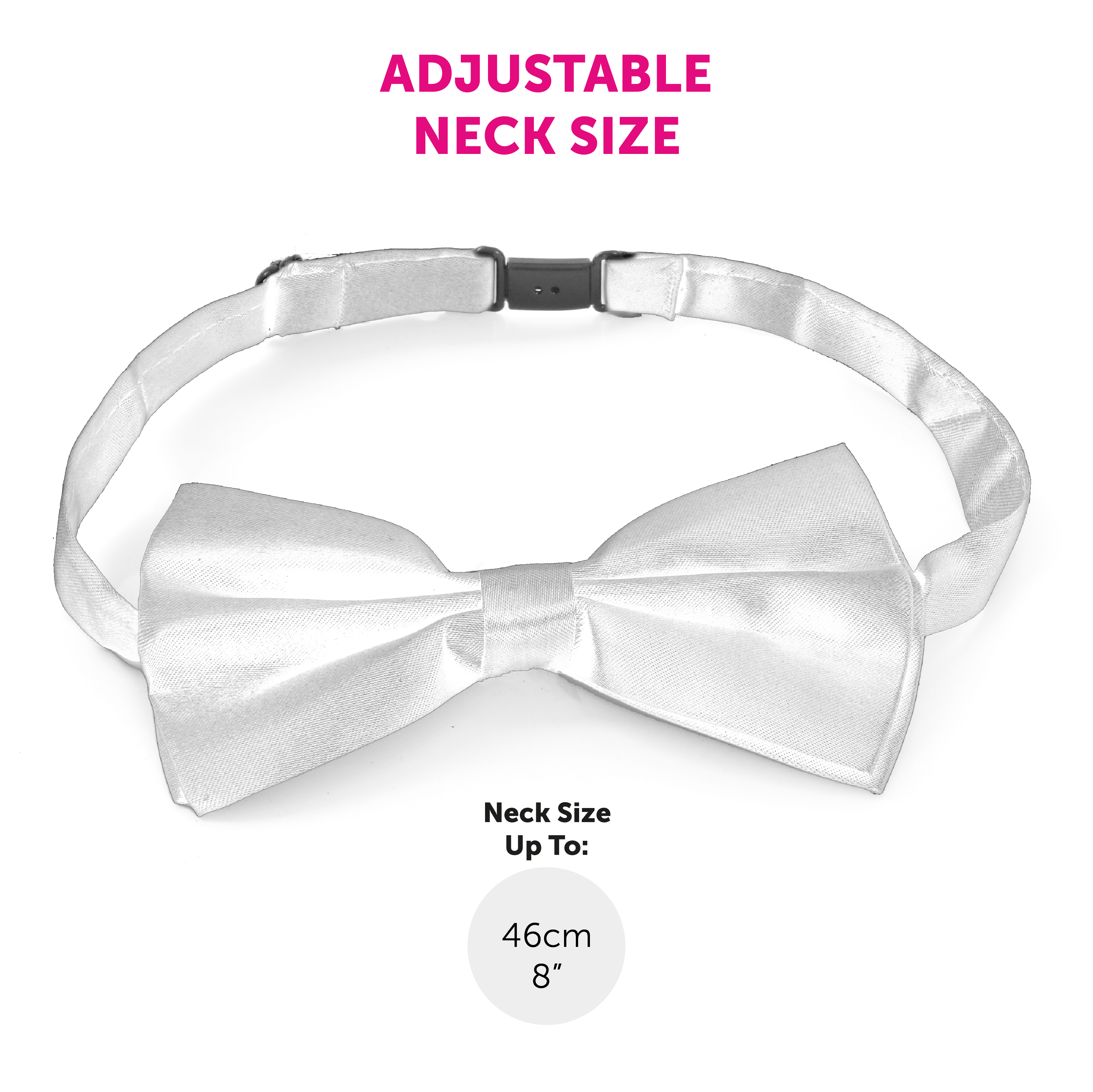 ONE SIZE FITS ALL: Your White Satin Bow Tie measures up to 46cm (18") and fits any Adult perfectly and can be adjusted to the desired length and size to fit your style comfortably and well!