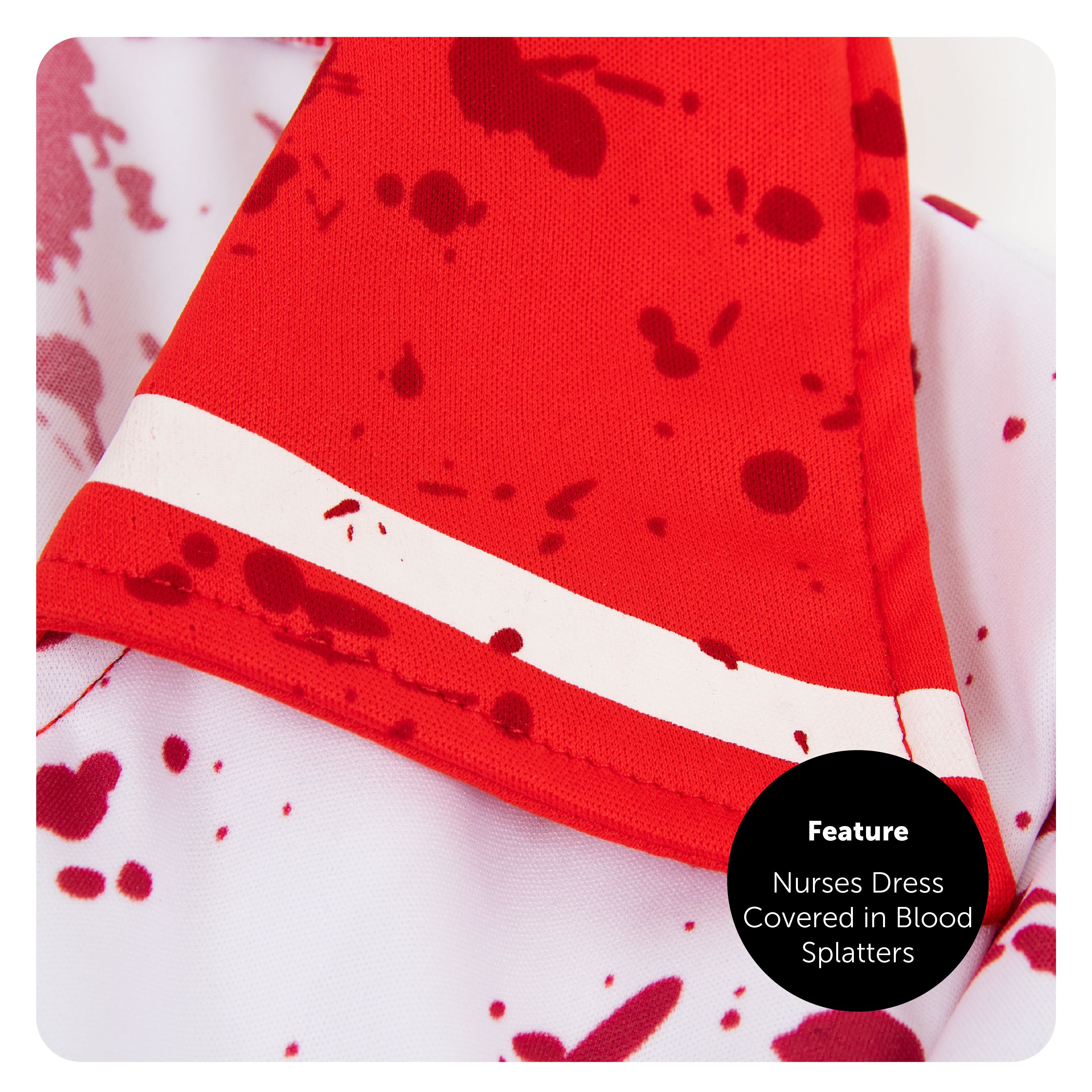 ADULTS VILLAIN NURSE COSTUME: Inject some chaos into your next fancy dress event with the Adults Villain Nurse Costume – the perfect sinister twist on a medical classic, with a clean-cut look splattered in mischief and a dangerously wide grin, this costume is sure to get pulses racing!